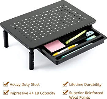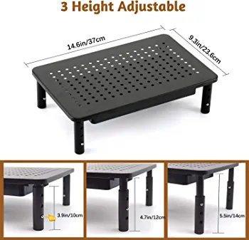 | nameOriginal | ECVV Monitor Stand Riser, 3 Adjustable Height Monitor Stand with Storage Drawer for Computer, PC, Printer Home&Office, Ergonomic Premium Metal Riser Stand, Black |