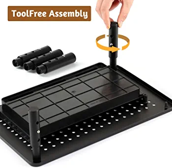 This monitor stand is designed to provide optimal air circulation for your laptop while you work or study. Its open surface design and strategically placed holes prevent overheating and ensure your computer stays cool and in top condition. The non-skid rubber pads and high-grade anti-skip bumper pads offer maximum stability and protect your screen from accidental damage. The round corner design also ensures the safety of your devices and yourself in case of minor accidents. This monitor stand riser comes in black and is made of metal, with a weight capacity of 22LBS. It is height adjustable with three options: 3.9″ (10CM), 4.7″ (12CM), and 5.5″ (14CM). The size of the platform is 37*23.6cm and it weighs 2.9lbs. The package includes one platform and four legs.