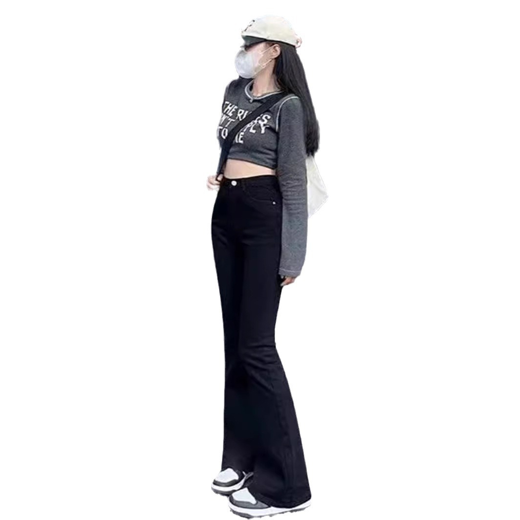 | nameOriginal | Black micro flared jeans for women 2023 Spring and Autumn New slimming high waist mopping trousers fleece-lined horseshoe pants |