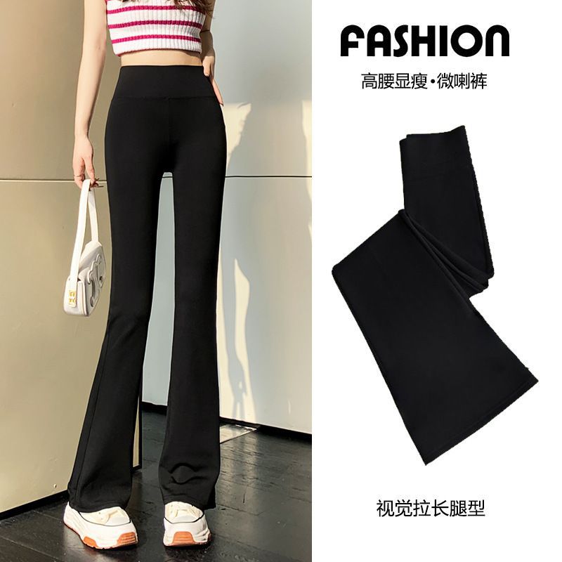 | nameOriginal | Black Micro-flared Pants Women's 2024 Spring New Elastic High Waist Tight Slimming Nine-point Outer Wearing Base Pants |