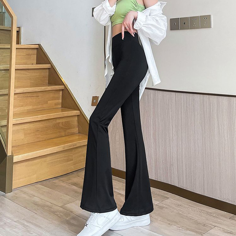Black Micro-flared Pants Women's 2024 Spring New Elbow High Waist Tight Slimming Nine-point Outer Wearing Base Pants