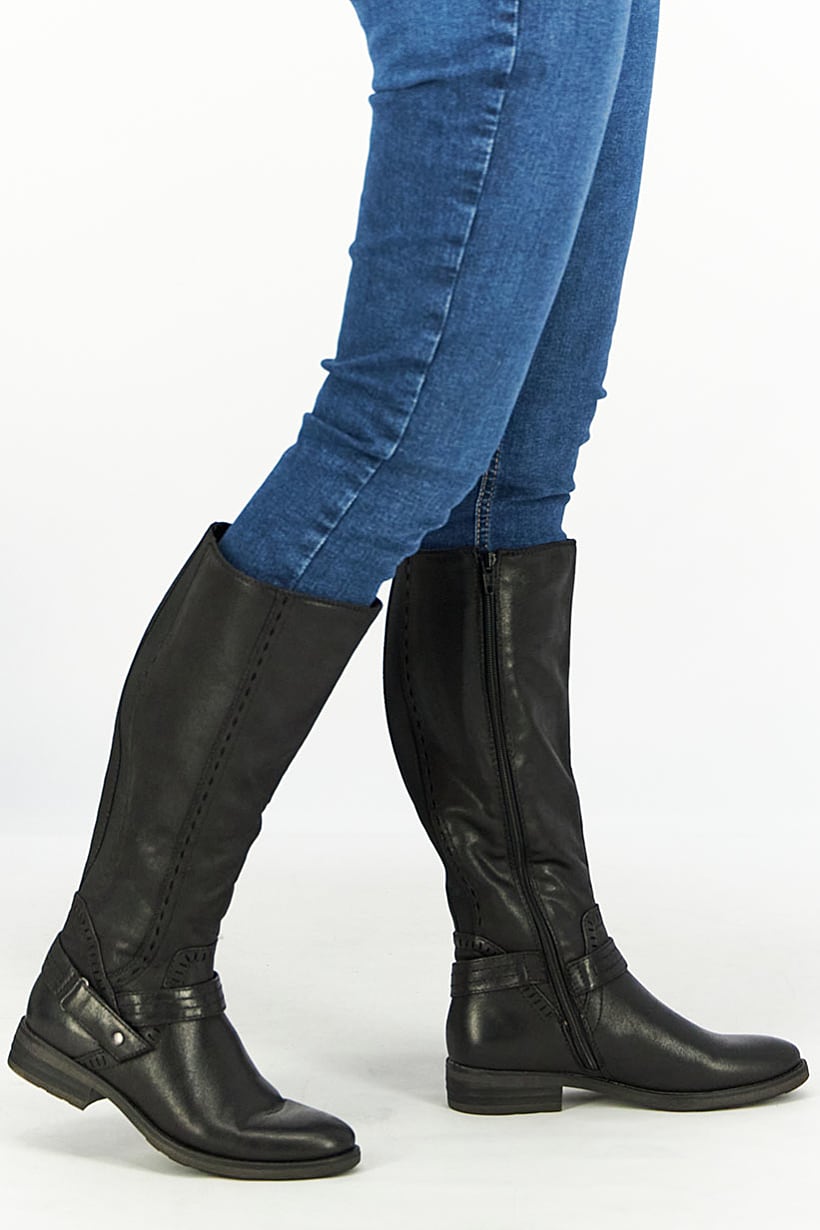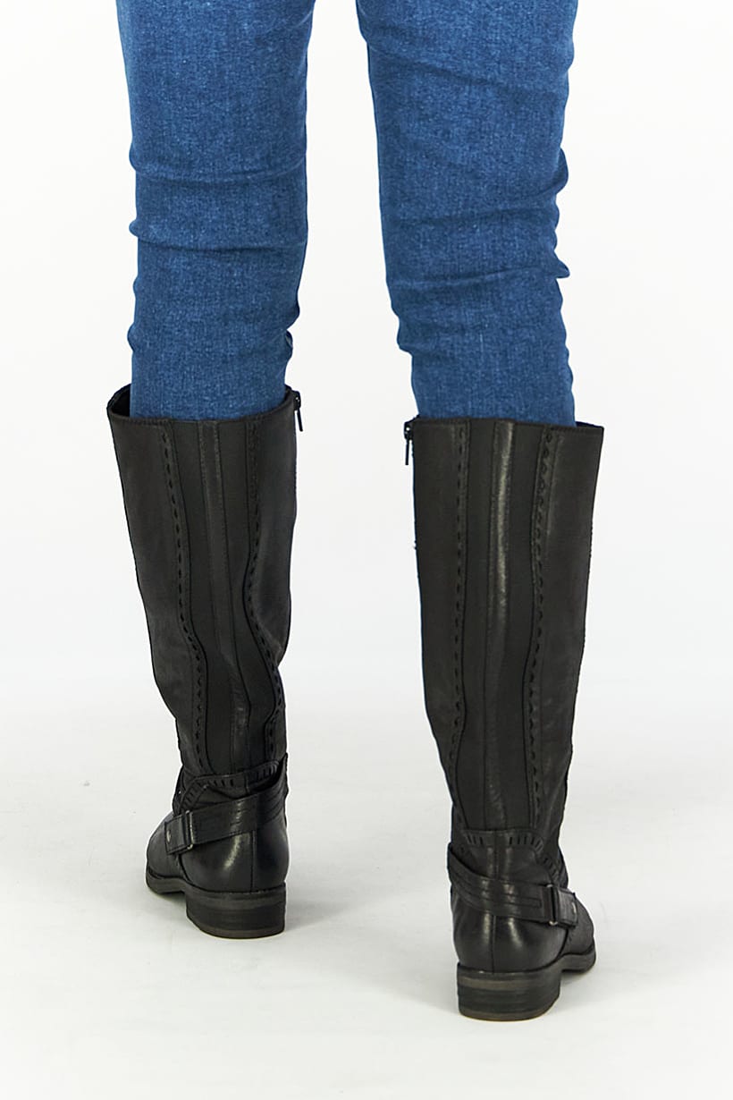 Heel Style : No heel, Ideal For : Women, Shoe Closure : Zipper closure, Shoe Width : Medium, Sole Material : Fabric sole, Style : Mid Calf Boot, Toe Style : Closed toe, Occasion : Casual, Shoe Material : Leather, Color Family : Black,