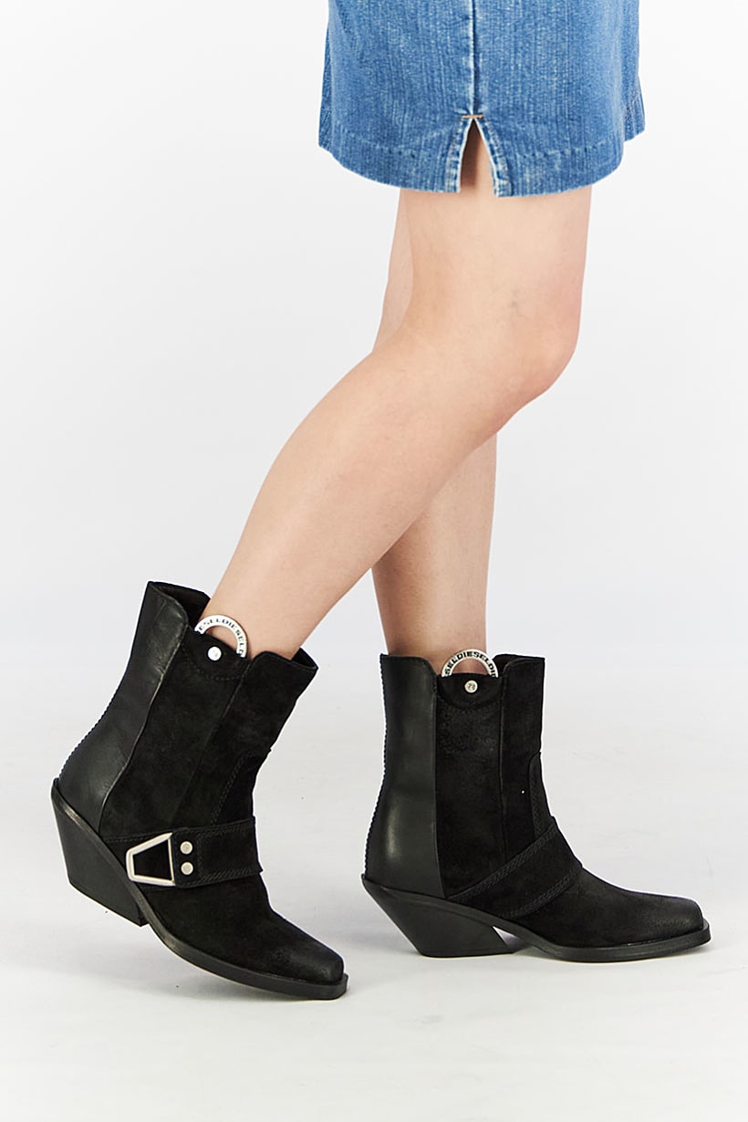 Heel Height : 2" / 5 cm, Heel Style : Block heel, Ideal For : Women, Shoe Closure : Slip on, Shoe Width : Standard, Sole Material : Synthetic sole, Style : Mid Calf Boot, Toe Style : Closed toe, Occasion : Casual, Shoe Material : Synthetic Leather, Color Family : Black,