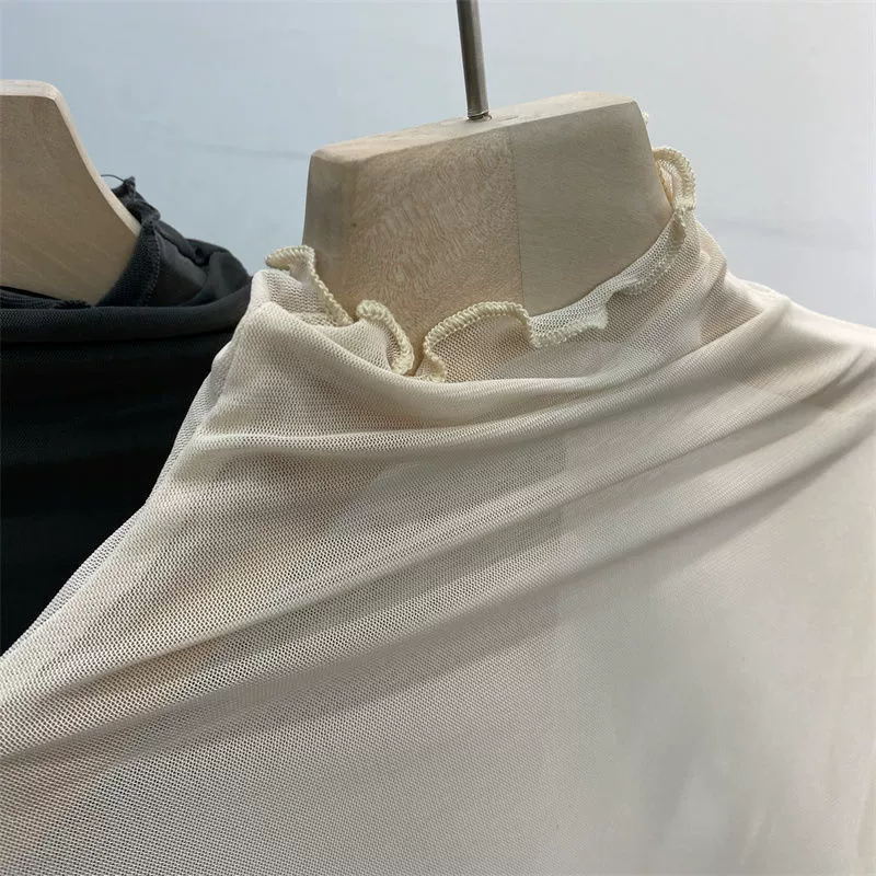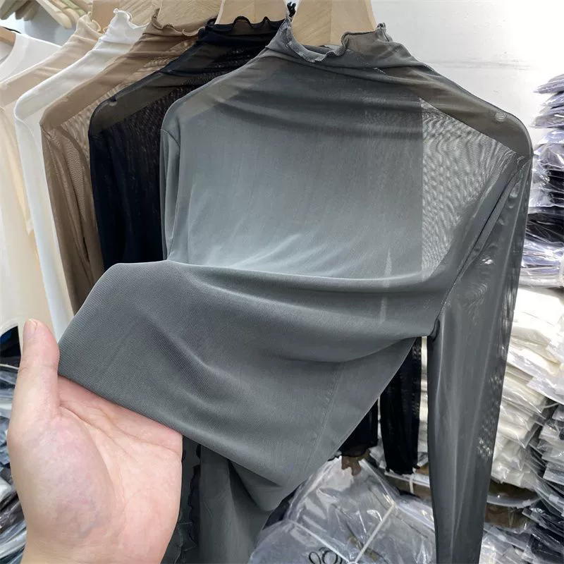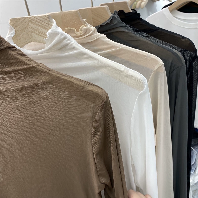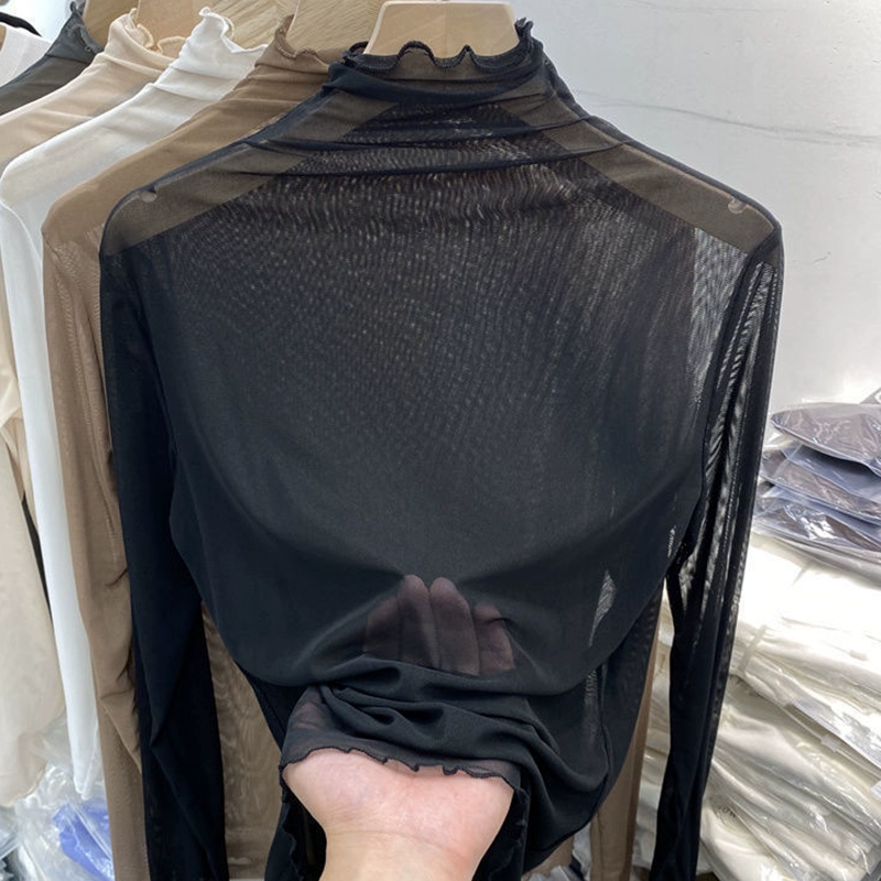 | nameOriginal | Black mid-collar lace shirt top for women spring and autumn thin large size fat MM sexy inner layering shirt sheer long-sleeved T-shirt |