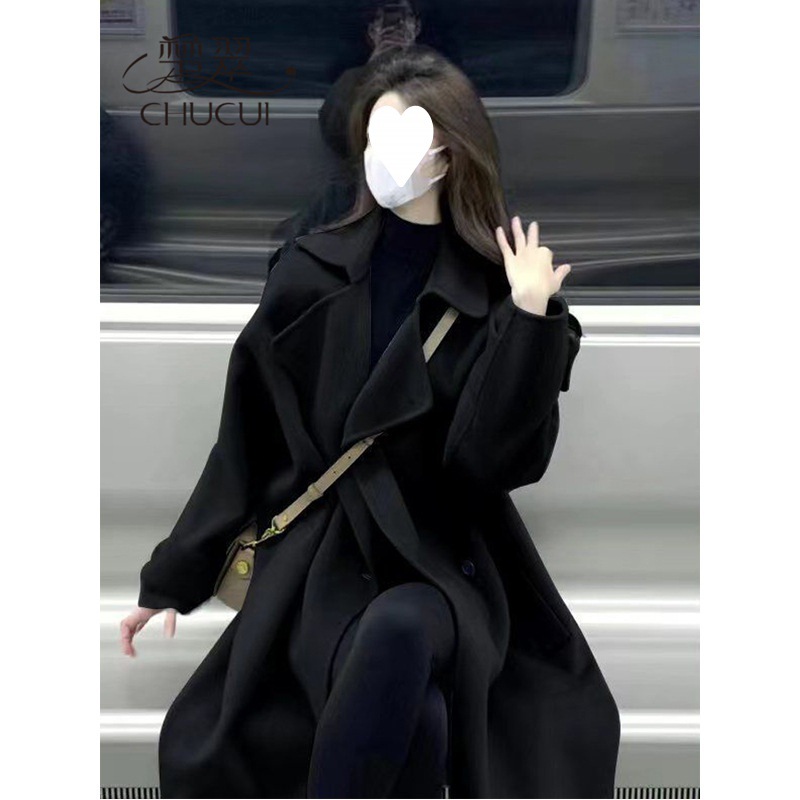 | nameOriginal | Black Mid-length Woolen Coat Coat Women's Autumn and Winter Korean Hepburn Style Wear Small Trenchcoat |