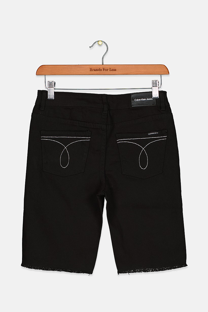 This product is suitable for boys and is perfect for casual occasions. It features a plain/solid black color and a five pocket style with a button and zipper fly closure at the bottom. The fabric is made of 98% cotton and 2% elastane, making it comfortable and durable. This type of short is a denim short and can be easily machine washed.