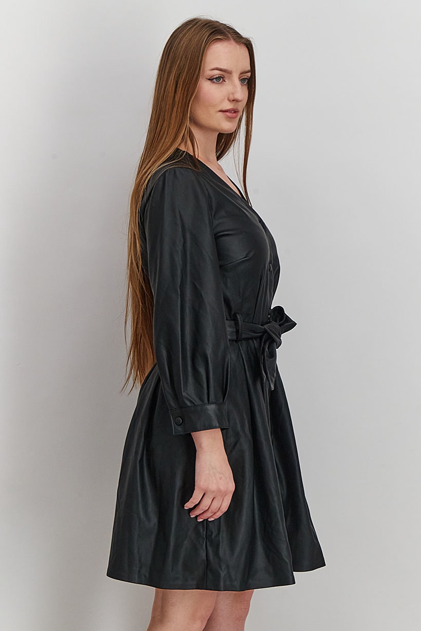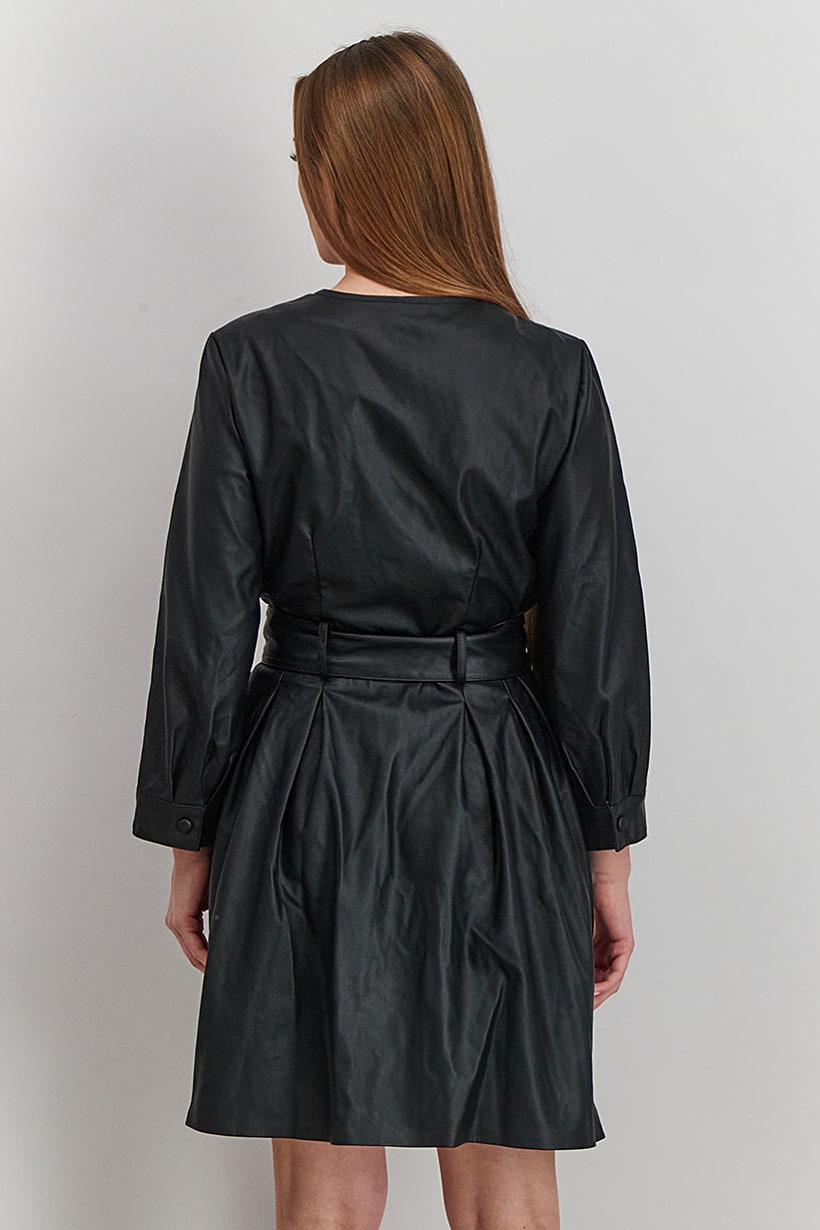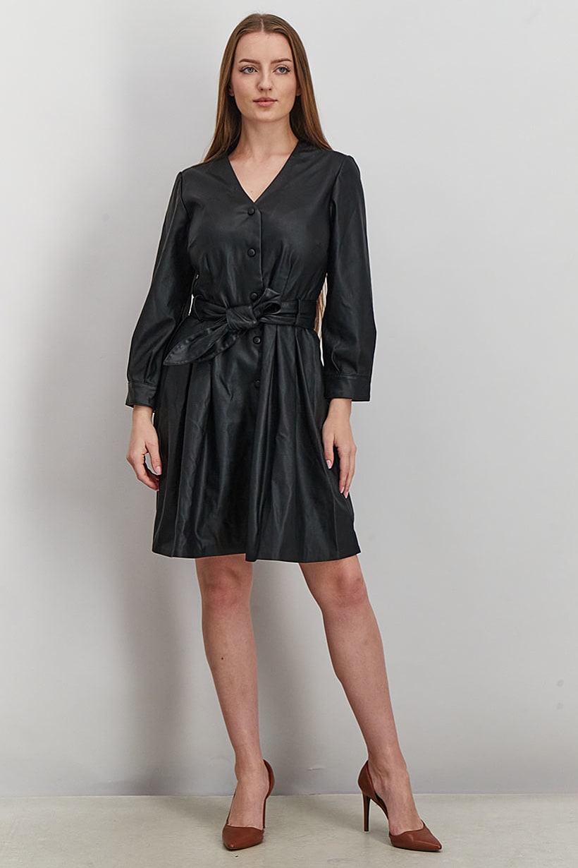 | sub_Categories | Women Clothing, Dresses, women faux leather long sleeve belted midi dress black |