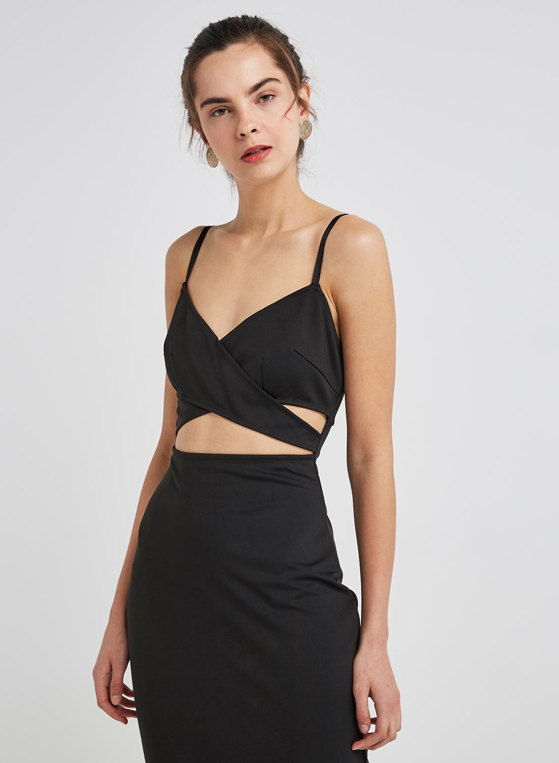 | nameOriginal | Surplice Cut Out Midi Dress Black |