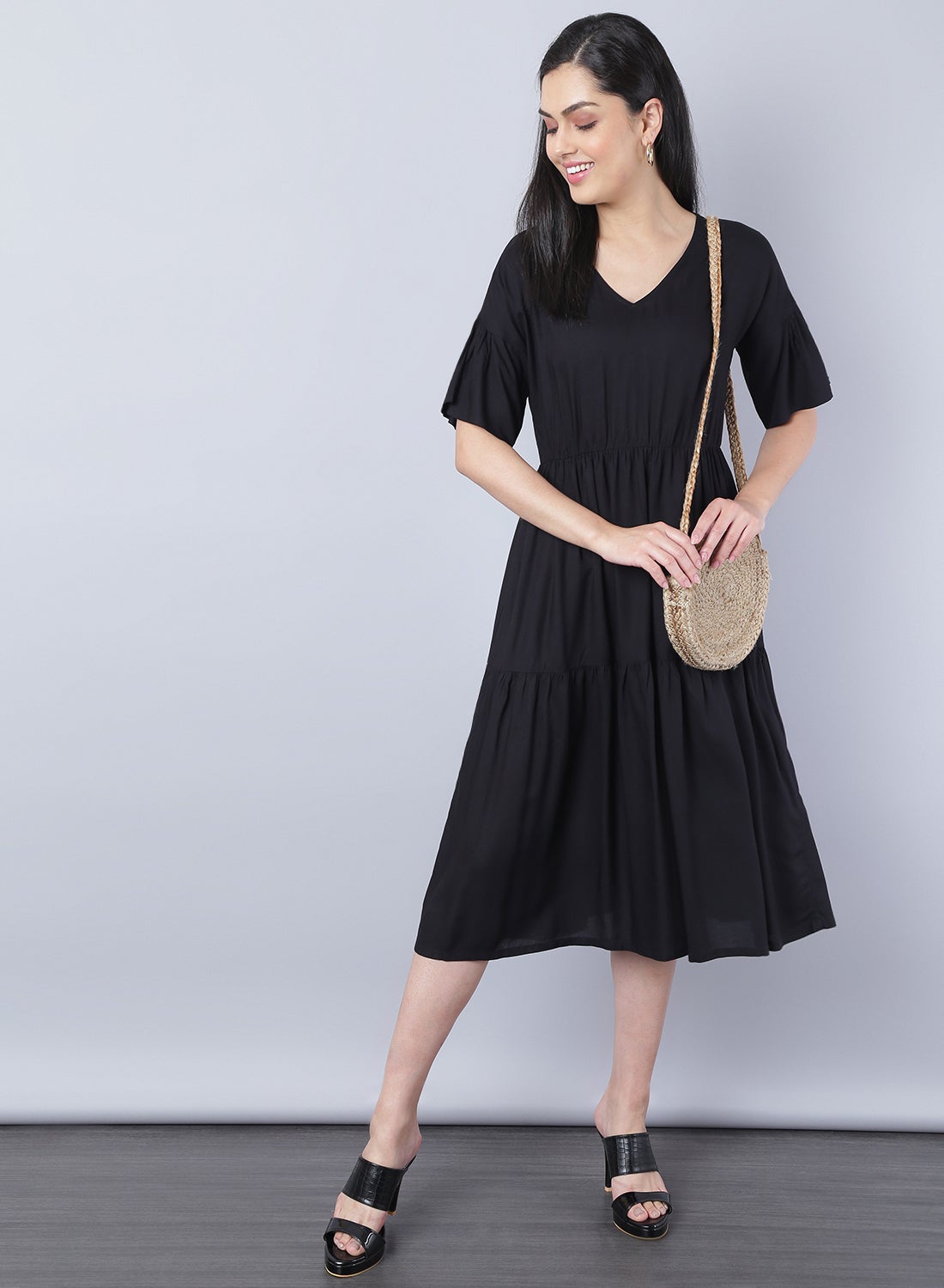 | nameOriginal | Short Sleeve Midi Dress Black |