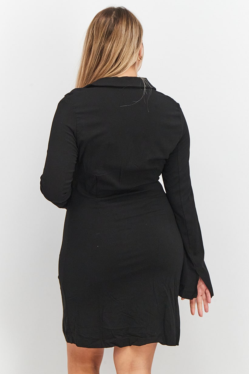 | nameOriginal | Women Split Collar Long Sleeves Plain Mini Dress, Black |