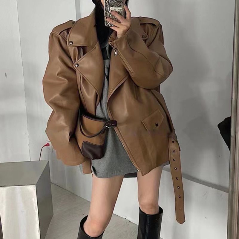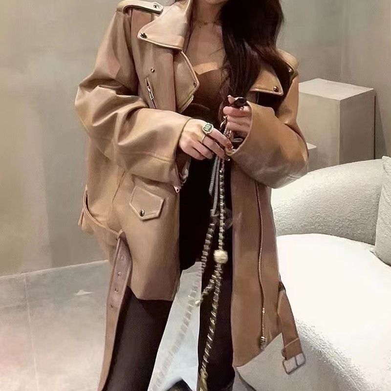 | nameOriginal | Black Motorcycle Leather Jacket Women's Spring and Autumn 2024 New Explosions Jacket Loose Fashion All-match High-end Sense |