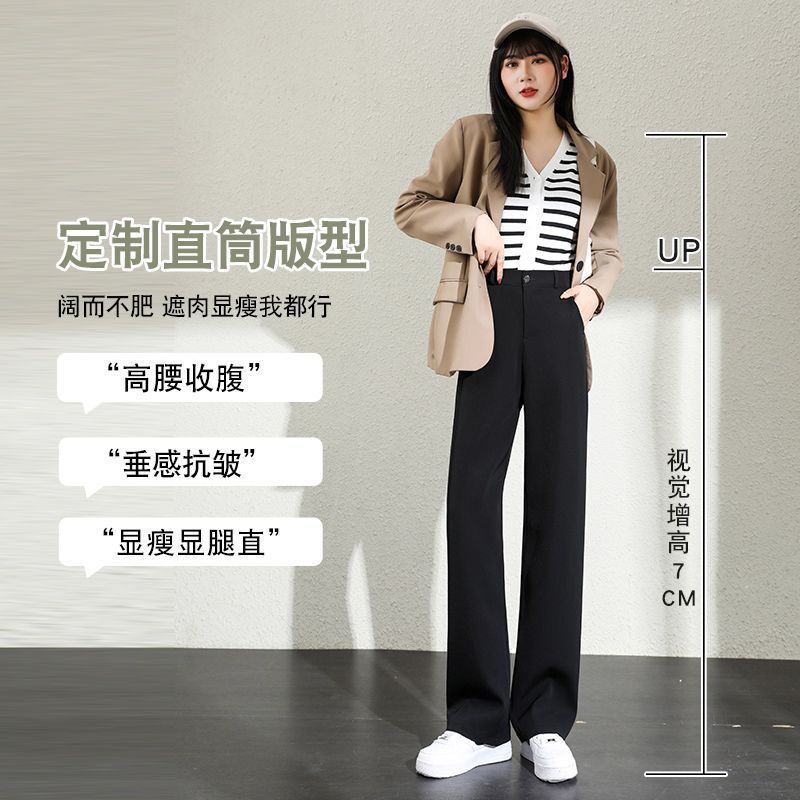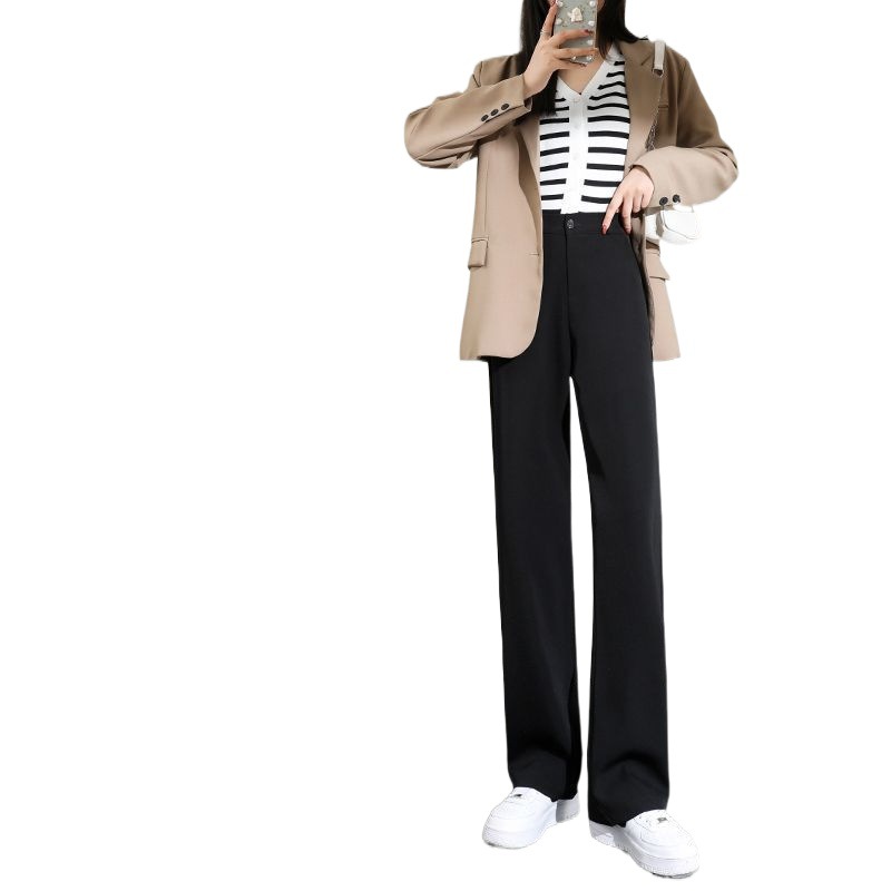 Black Narrow-length Pants Women’s Summer Thin High Waist Long Dagging Loose Wide Leg Casual Straight Trousers