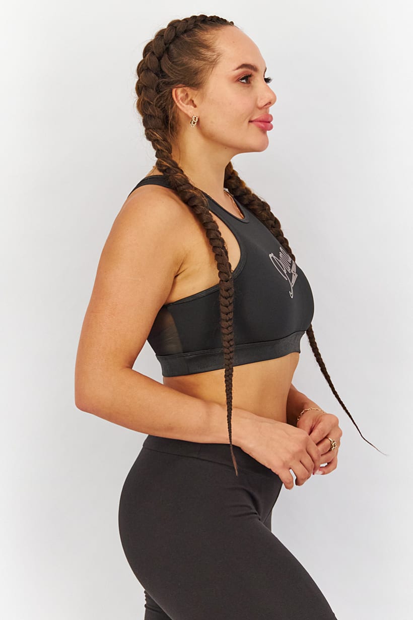 Care : Machine washable, Fit : Regular fit, Size shown : US, Thickness : Light, Type of Sport : Training, Types of Neckline & Collar : Round neckline, Types of Sleeve : Sleeveless, Disclaimer : Product color may slightly vary due to photographic lighting sources or your monitor settings., Fabrics : 77% Polyester, 23% Elastane, Occasion : Sport, Pattern & Print : Graphic print, Sportswear Type : Sports Bra, Color Family : Black,