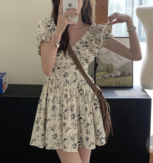 | nameOriginal | Black off-shoulder one-shoulder dress for women summer 2023 new floral skirt small French chiffon skirt |