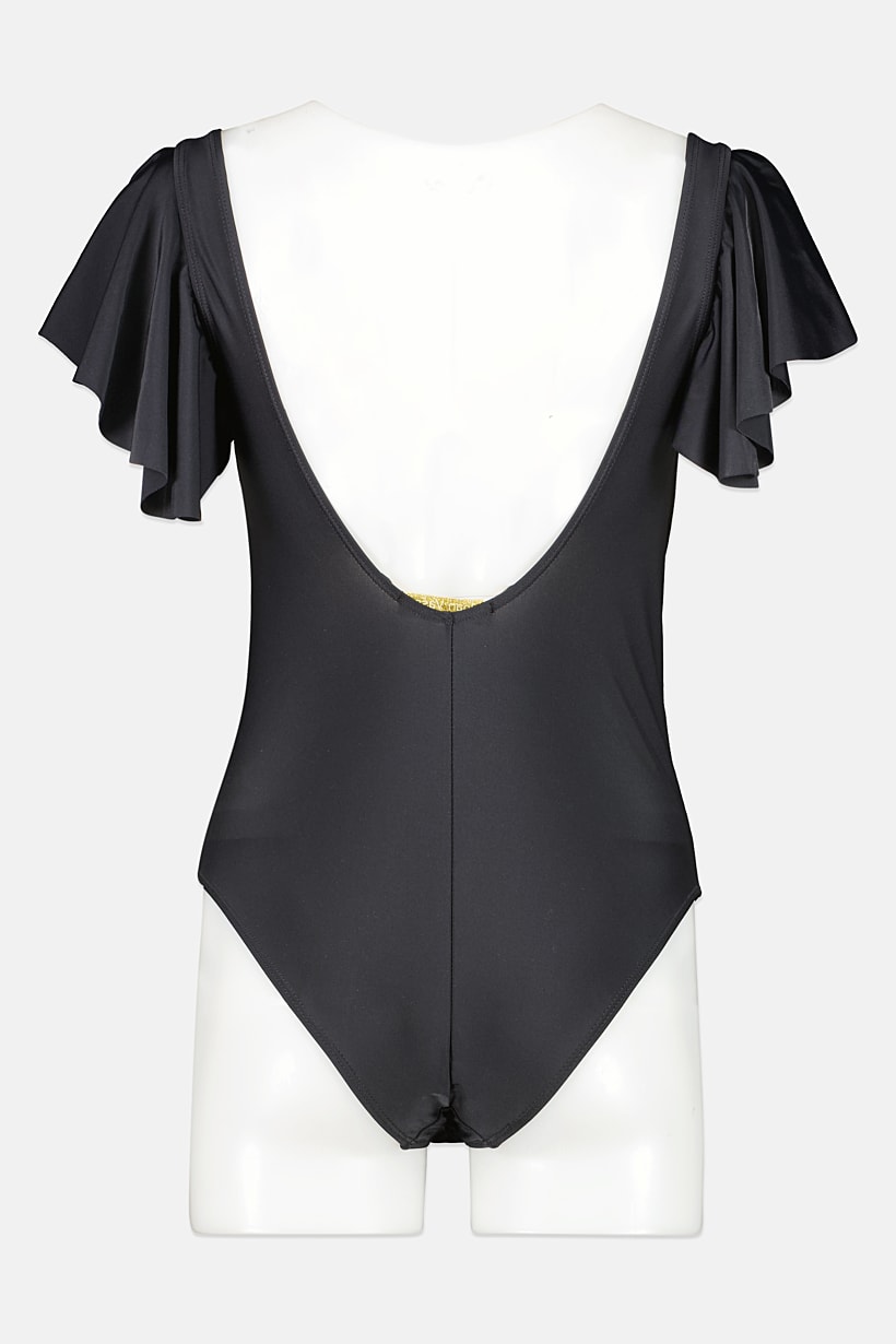 | descriptionOriginal | Care : Machine washable, Ideal For : Women, Padding : Yes, Size shown : International, Type of Swimwear : One Piece, Types of Neckline & Collar : V-neckline, Types of Sleeve : Ruffle sleeve, Underwire : No, Disclaimer : No returns accepted on lingerie, socks, undergarments and swimwear due to hygiene reasons., Fabrics : 82% Nylon, 18% Elastane, Pattern & Print : Plain/Solid, Types of Closures : Pull on, Color Family : Black, |
