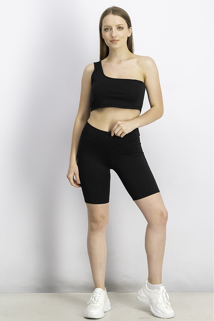 Women Clothing, Sportswear, women sportswear fit plain one shoulder top black