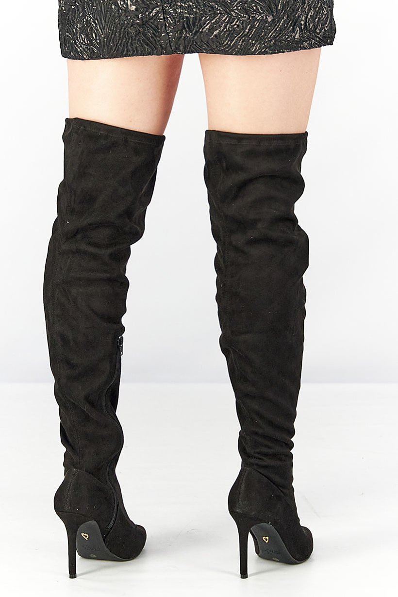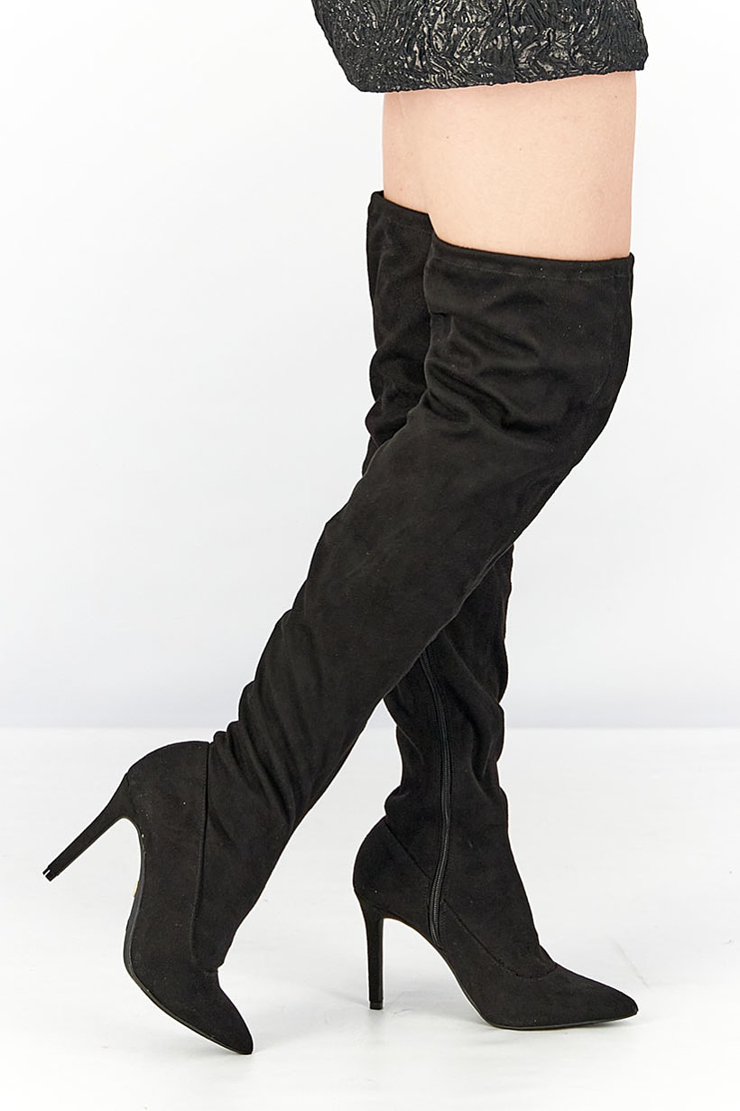 | descriptionOriginal | Heel Style : Stiletto heel, Ideal For : Women, Shoe Closure : Zipper closure, Shoe Width : Standard, Sole Material : Latex sole, Style : Over-the-knee boot, Toe Style : Pointed toe, Disclaimer : Product color may slightly vary due to photographic lighting sources or your monitor settings., Occasion : Casual, Pattern & Print : Textured pattern, Shoe Material : Suede , Color Family : Black, Heel Height : 4" / 10 cm, |