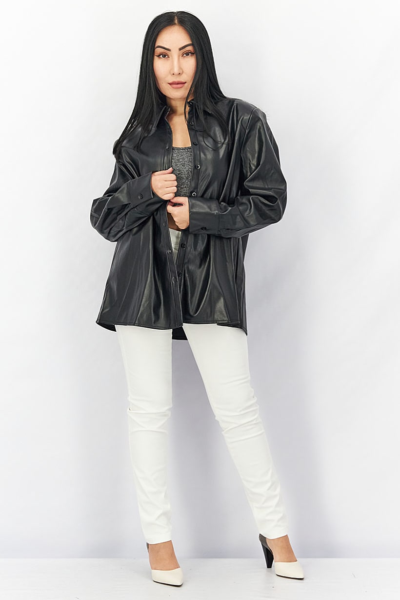 | descriptionOriginal | Care : Machine washable, Fit : Oversized Fit, Ideal For : Women, Size shown : EU, Top Style : Polo, Types of Hem : Straight hem, Types of Neckline & Collar : Spread collar , Types of Sleeve : Longsleeve, Disclaimer : Product color may slightly vary due to photographic lighting sources or your monitor settings., Fabrics : 100% Polyurethane, Occasion : Casual, Pattern & Print : Plain/Solid, Types of Closures : Button, Color Family : Black, |
