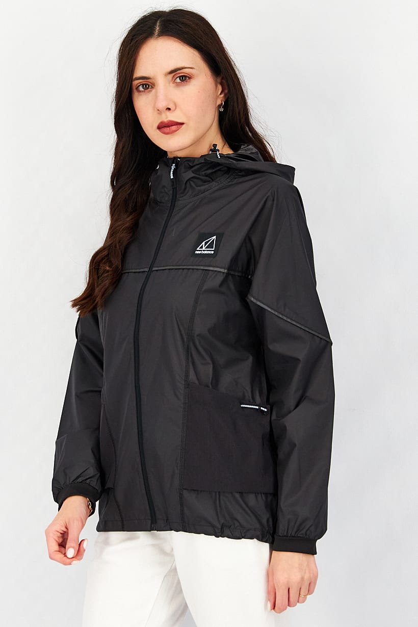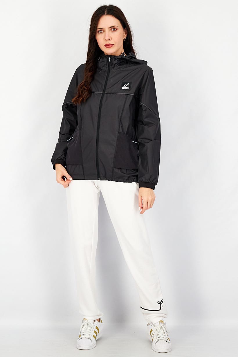 Women Relaxed Fit Packable Outdoor Jacket, Black