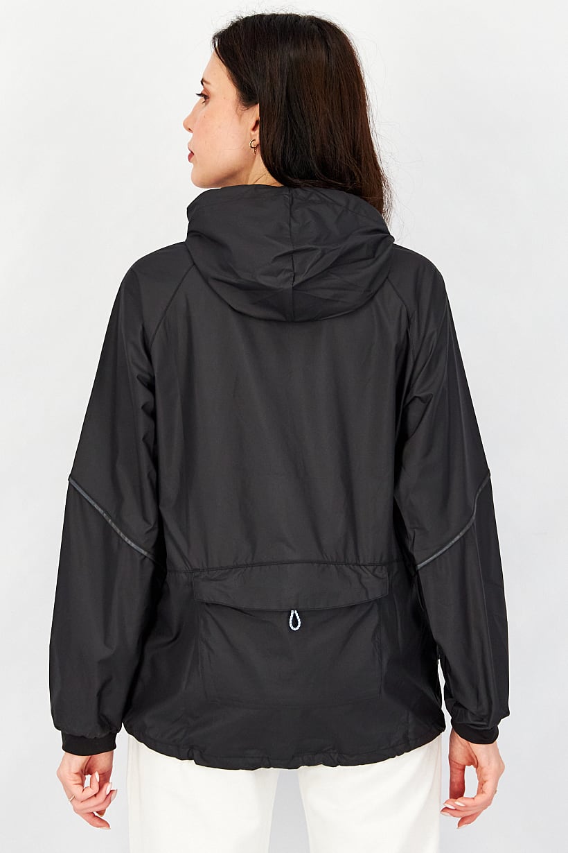 Care : Machine washable, Fit : Relaxed fit, Size shown : US, Sleeve Length : Long Sleeve, Thickness : Light, Types of Hem : Straight hem, Types of Neckline & Collar : Hood, Types of Sleeve : Longsleeve, Disclaimer : Product color may slightly vary due to photographic lighting sources or your monitor settings., Fabrics : 100% Polyester, Occasion : Sport, Pattern & Print : Plain/Solid, Sportswear Type : Jackets, Types of Closures : Concealed zipper, Color Family : Black, Type of Sport : Outdoors,