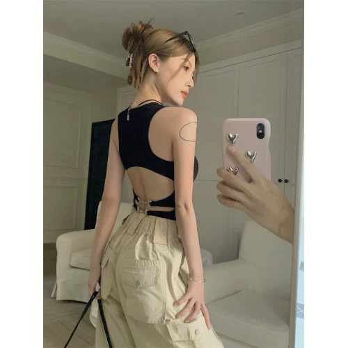 | nameOriginal | Black padded I-shaped camisole for women in summer, with backless and beautiful backless sleeveless sweet and cool hot girl tops for summer. |
