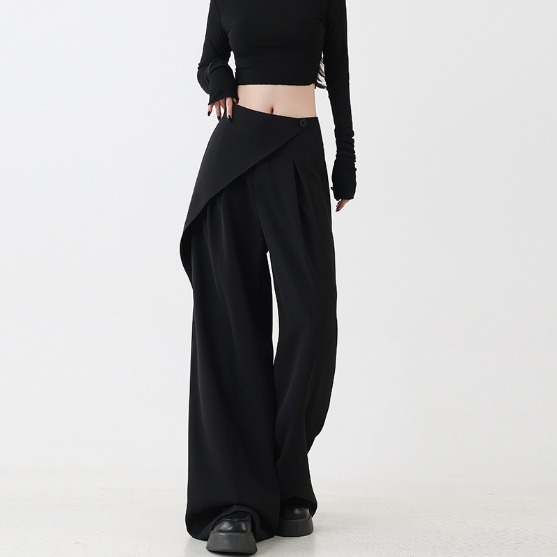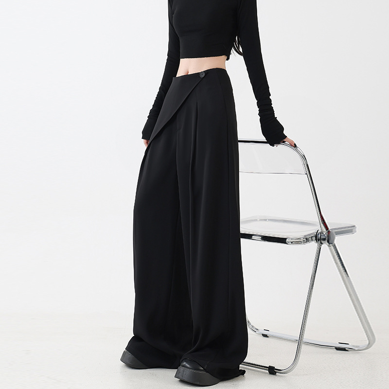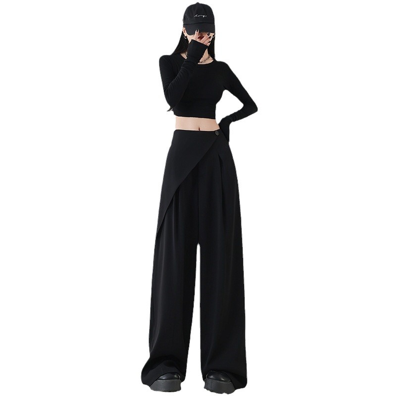 Black Pants Women's 2024 Summer High Waist Casual Simple Pants All-match Slim Look Wide Leg Pants