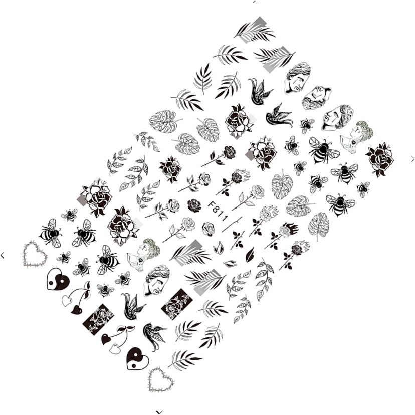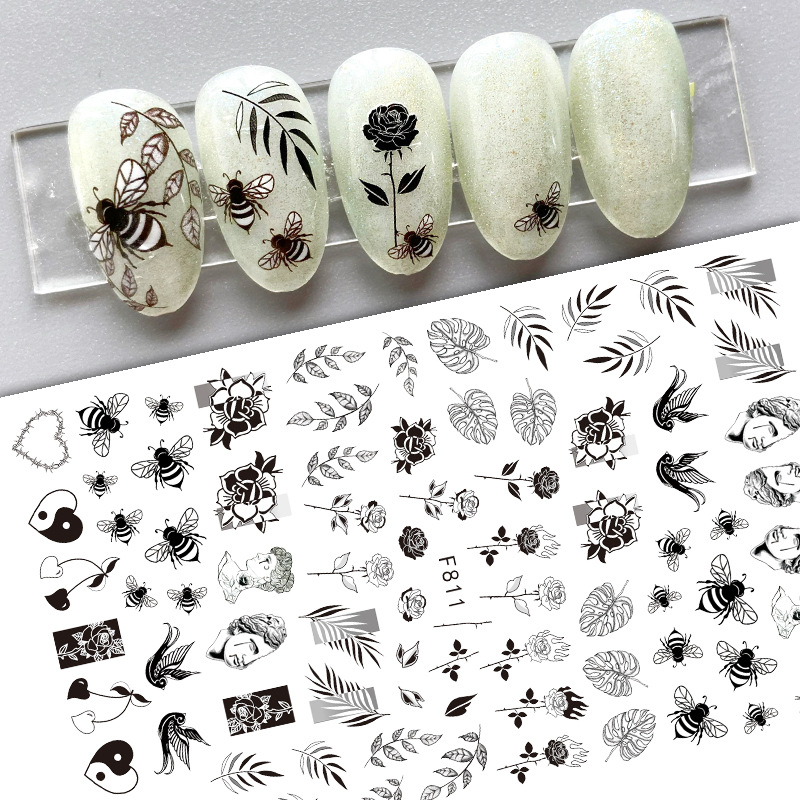 | nameOriginal | Black Personality Art Flower Avatar Bee Nail Decal Leaves Color Flower Nail Decal Cross-border Exclusive |