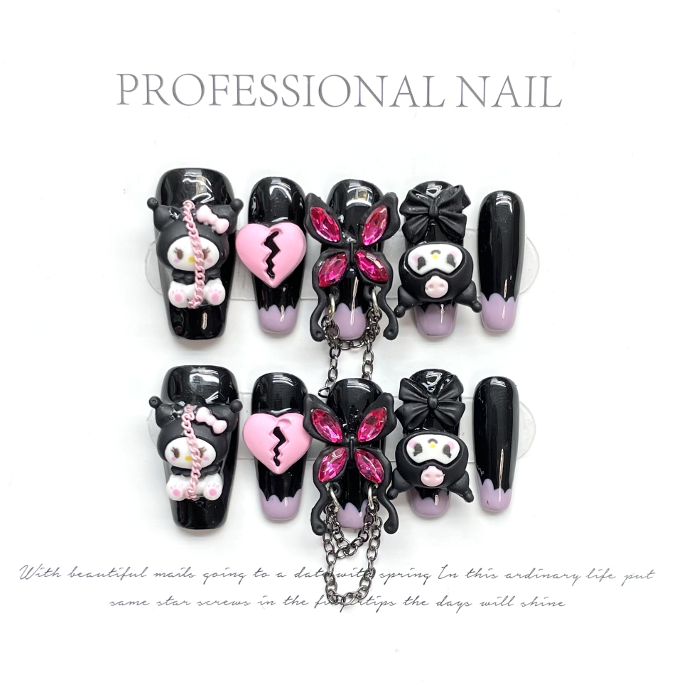 | nameOriginal | Black Pink Culomi Patch Smudged Chain Wear Nails |