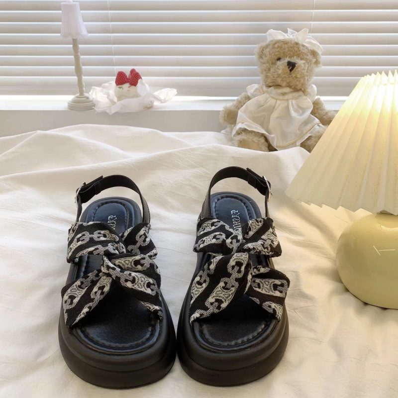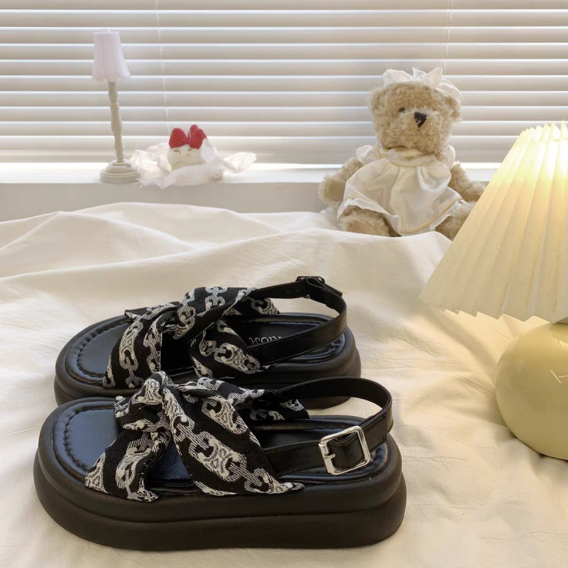Black Platform Sandals with Skirt Women 2024 New Spring French Fairy Roman Shoes