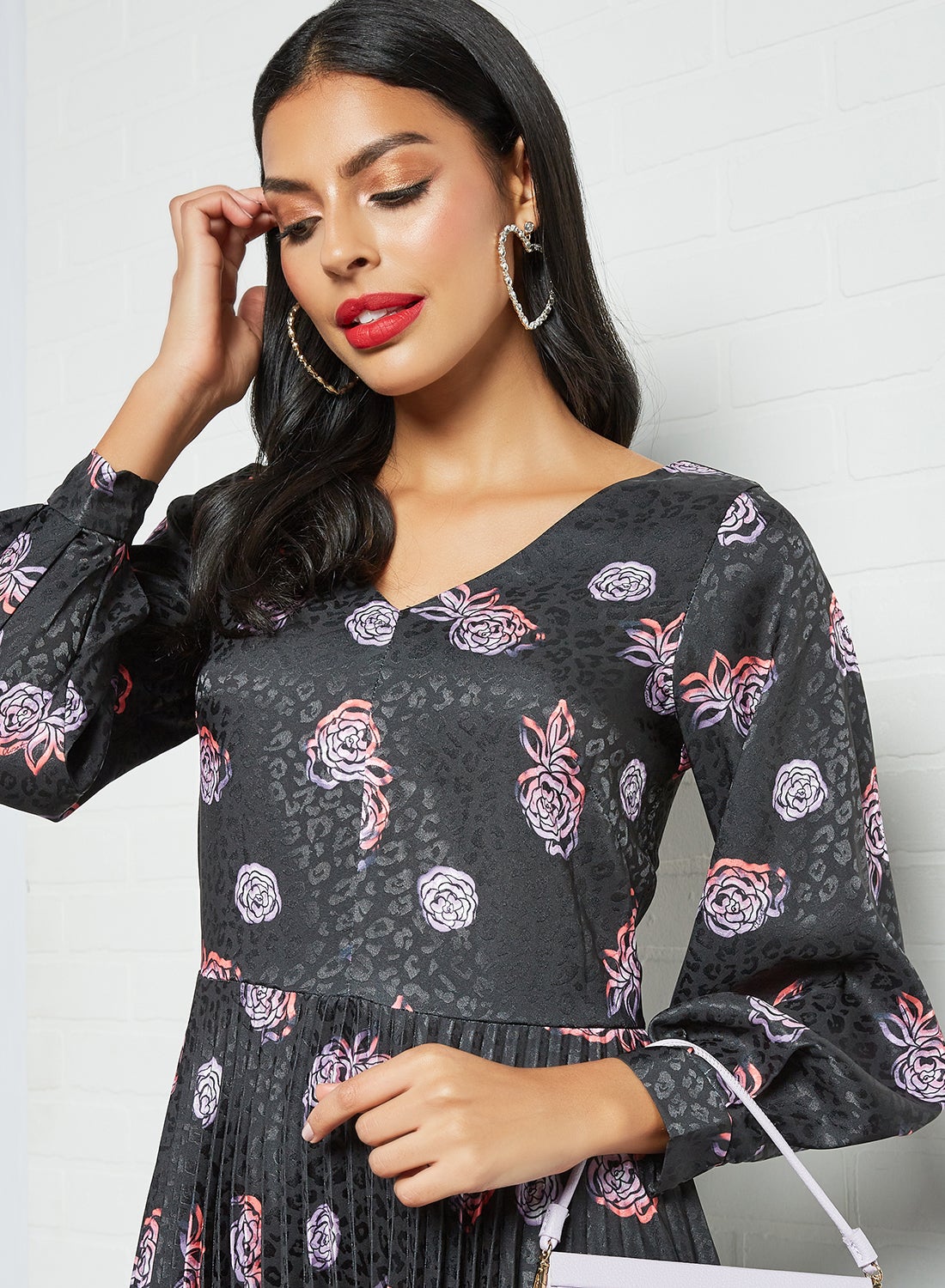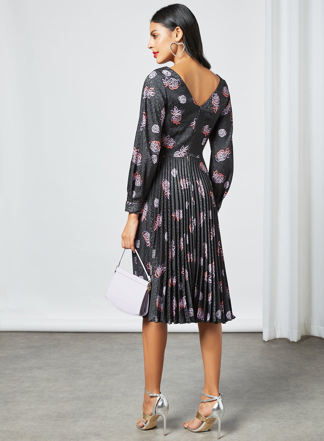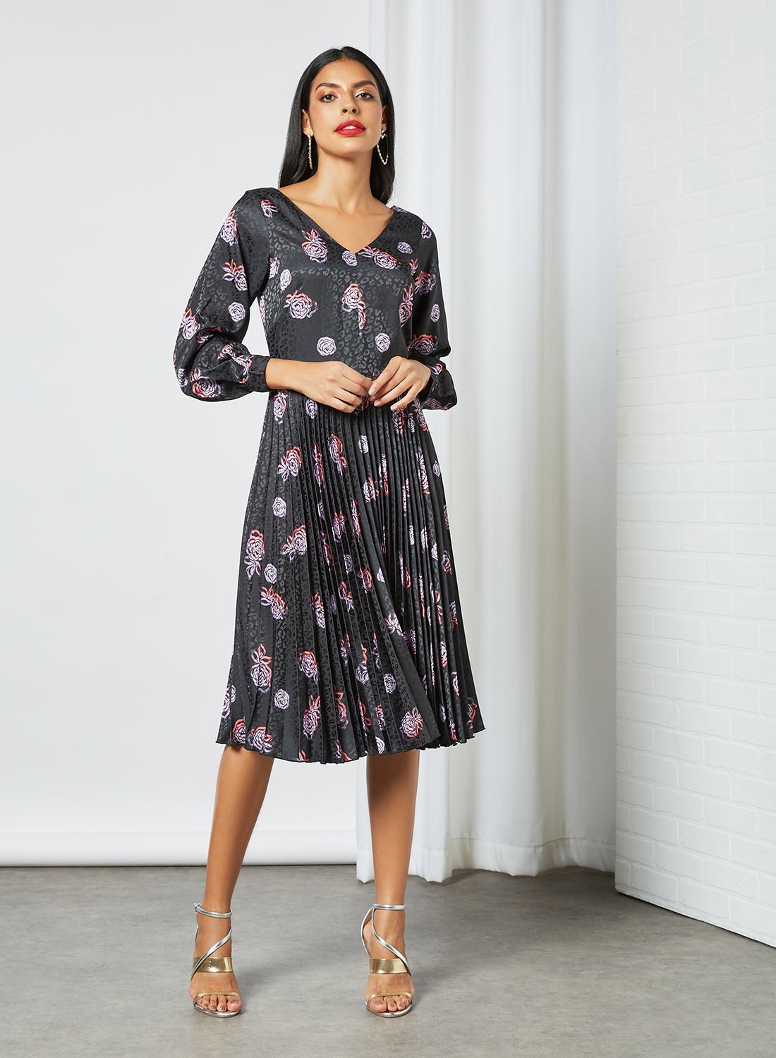 | nameOriginal | Floral Print Pleated Dress Black |
