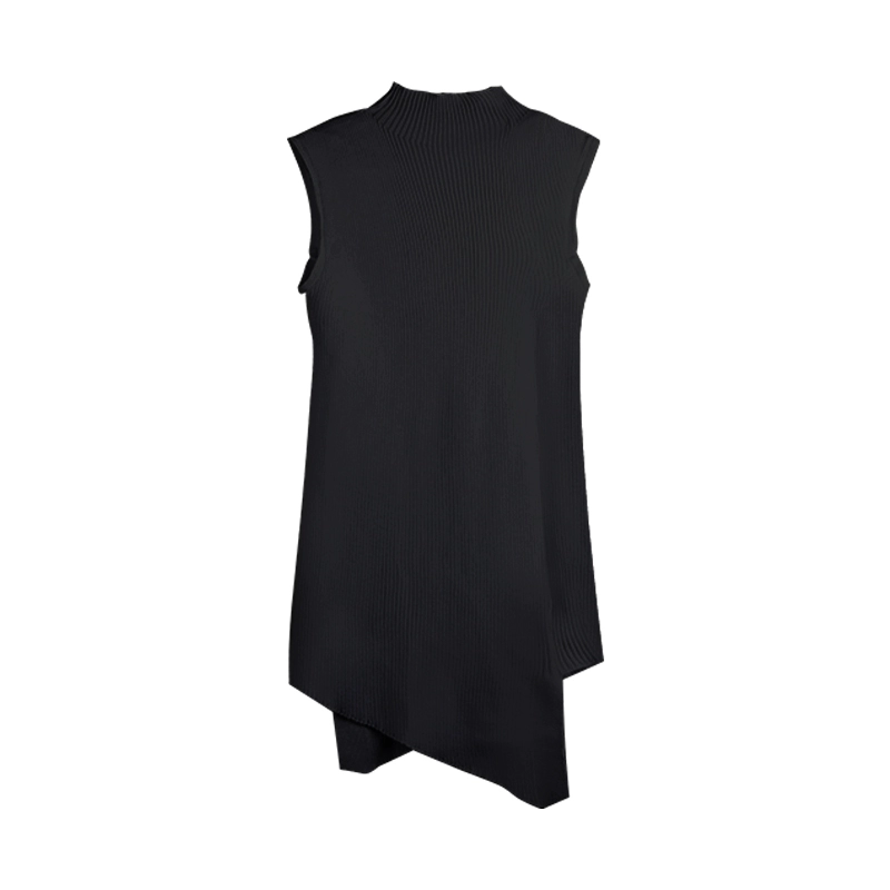 Black pleated half-length two-piece knitted vest