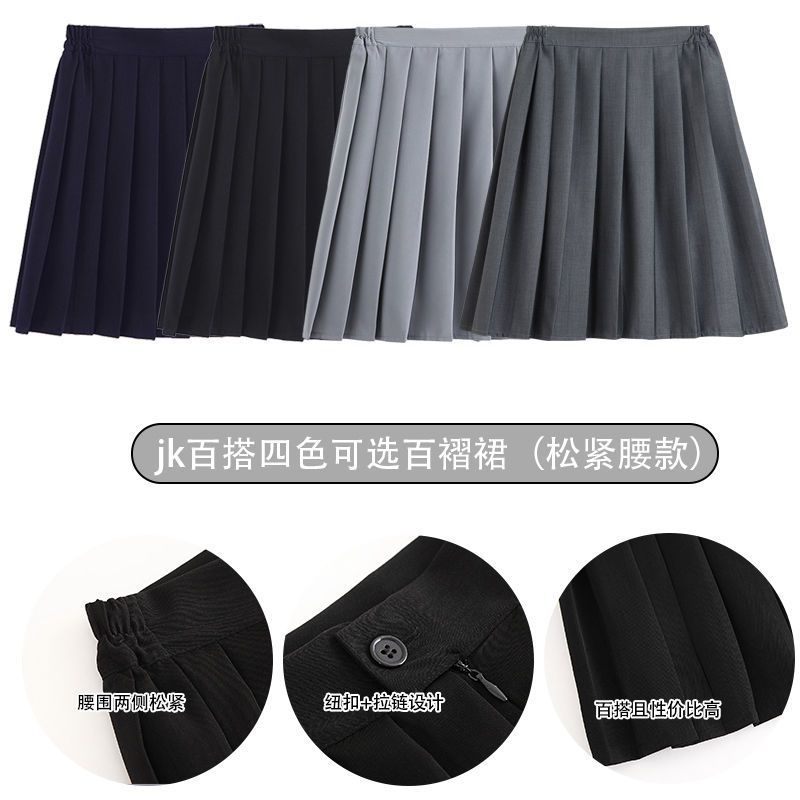 Black pleated skirt women’s summer jk uniform gray high waist mid-length elastic waist plus size skirt long skirt