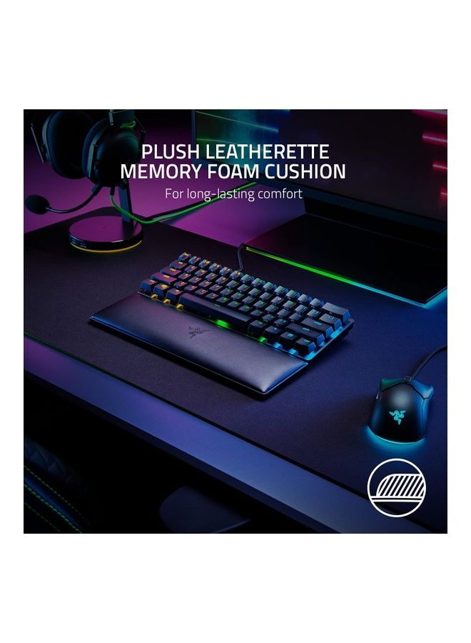 Black Plush Leatherette Memory Foam Wrist Rest for Mini Keyboards with Anti-Slip Rubber Feet.