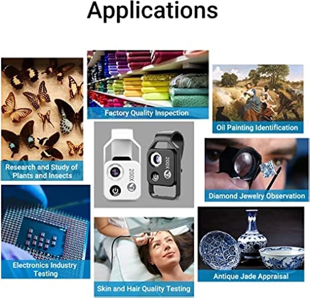 This pocket microscope is a wonderful gift for children and students who are curious about the world around them. With its 200X magnification and CPL (Circular-Polarizing Lens), it greatly eliminates reflections and reduces chromatic aberration while observing metal or diamond. The image quality of the microscope depends on the image quality of the phone, so make sure to use it correctly according to the instructions before use.