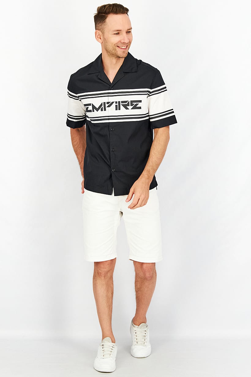 | descriptionOriginal | Care : Hand wash, Fit : Loose fit, Size shown : International, Sleeve Length : Short Sleeve, Types of Hem : Straight hem, Types of Neckline & Collar : Spread collar , Disclaimer : Product color may slightly vary due to photographic lighting sources or your monitor settings., Fabrics : 69% Cotton, 31% Polyester, Occasion : Casual, Pattern & Print : Graphic print, Types of Closures : Button, Color Family : Black, |