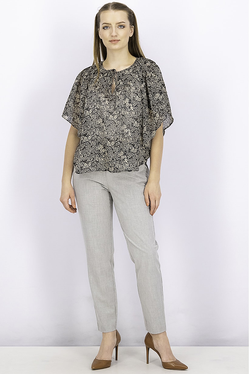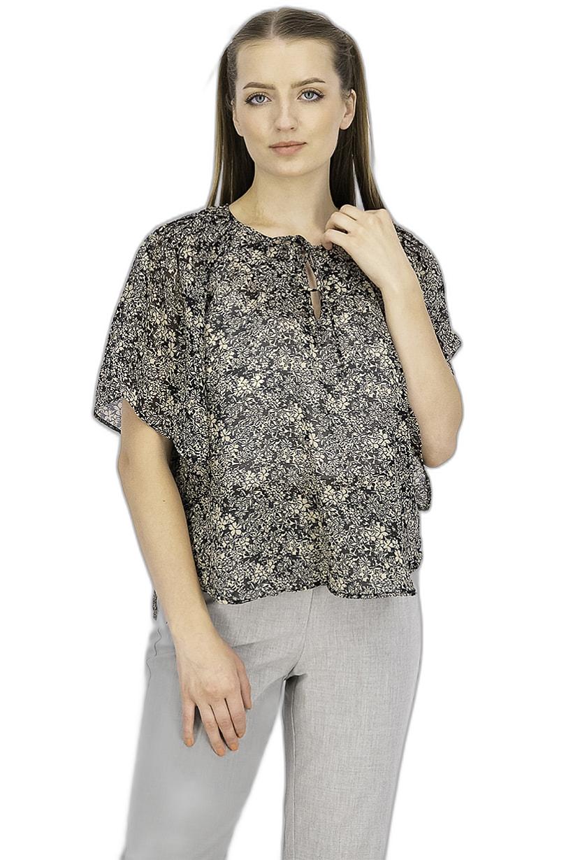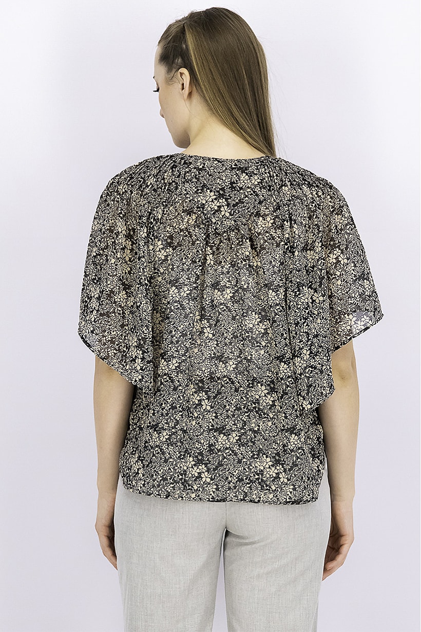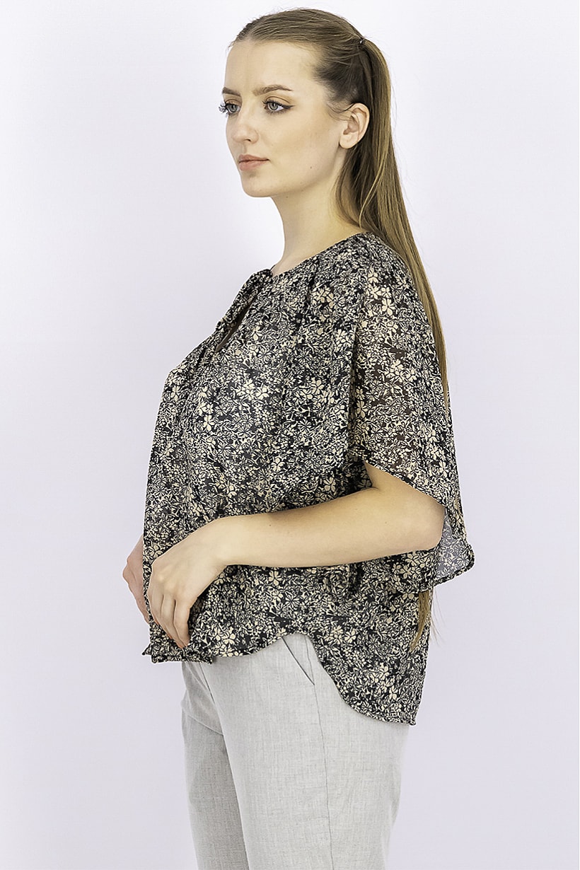 | descriptionOriginal | Care : Machine washable, Fit : Regular fit, Ideal For : Women, Size shown : EU, Top Style : Blouse, Types of Hem : Straight hem, Types of Neckline & Collar : Tie neckline, Types of Sleeve : Ruffle sleeve, Fabrics : 100% Polyester, Occasion : Casual, Pattern & Print : Allover print, Types of Closures : Tie closure, Color Family : Black, |