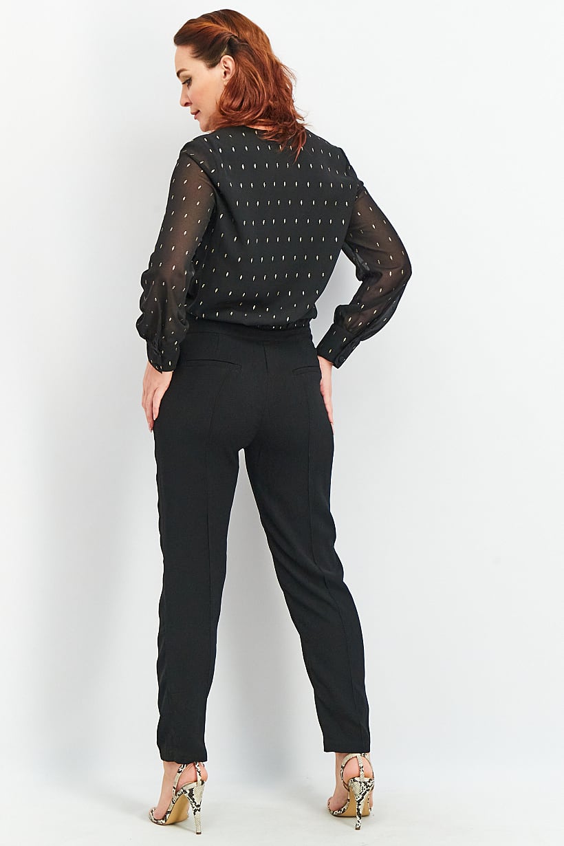 | descriptionOriginal | Care : Machine washable, Fit : Regular fit, Jumpsuit Type : Jumpsuits, Size shown : EU, Types of Neckline & Collar : V-neckline, Types of Sleeve : Longsleeve, Fabrics : 94% Polyester, 6% Elastane, Occasion : Casual, Pattern & Print : Allover print, Types of Closures : Pull on, Color Family : Black, |