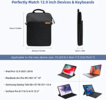 | nameOriginal | 12.9 Inch Laptop Sleeve Bag for iPad Pro 12.9 2018-2021 with Smart Magic Keyboard, 13 inch Surface Pro 9/8/X Protective Pouch with Accessory Pocket, Black… |