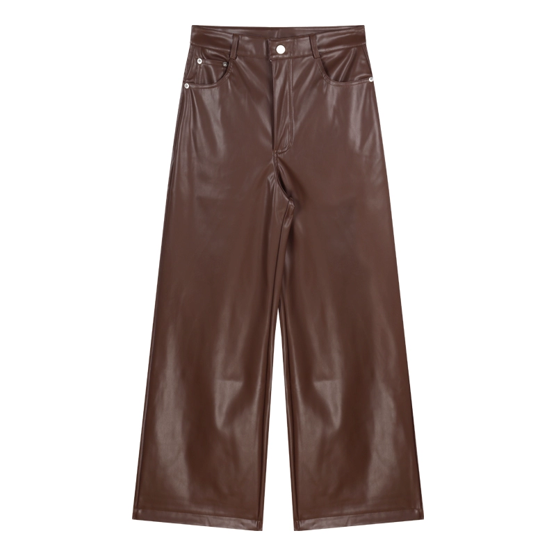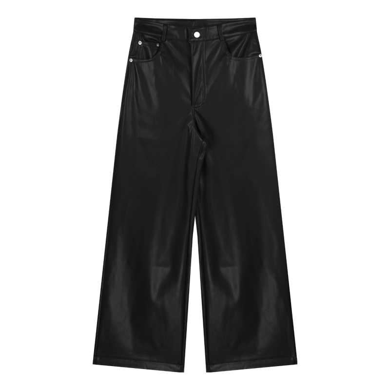 | nameOriginal | Black pu leather high waist drape straight loose casual pants |