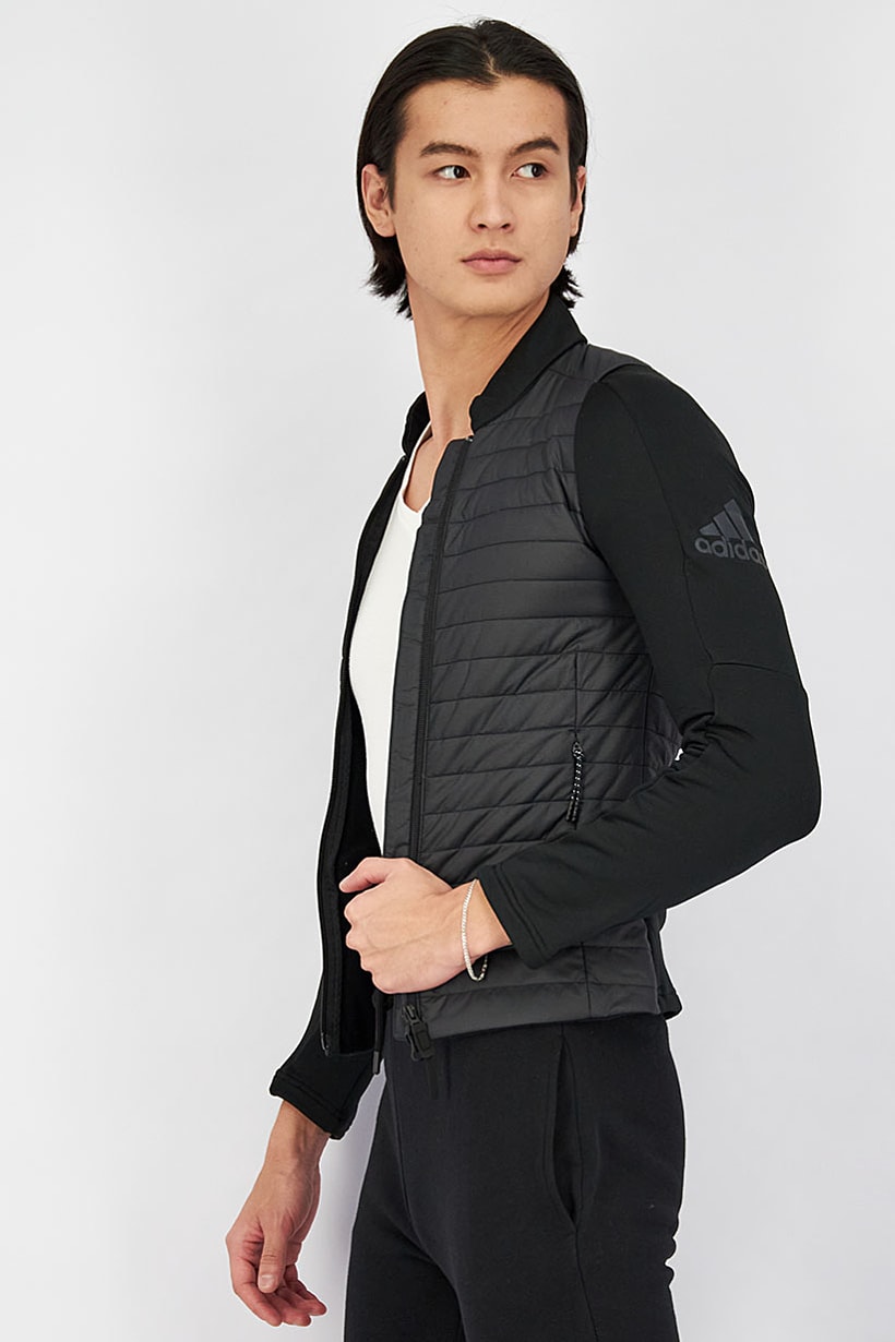 Men Clothing, Sportswear, men sports fit quilted long sleeve shell jacket black