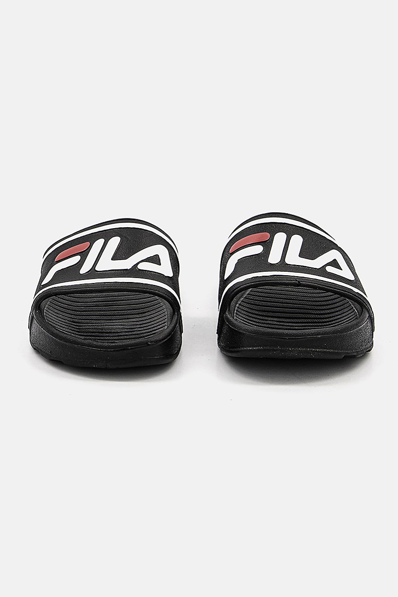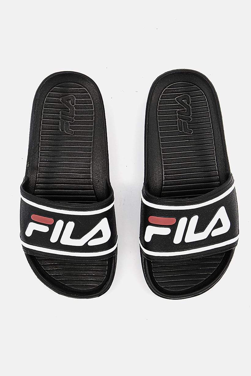 | nameOriginal | Kids Boy Brand Logo Sleek Slip On Slides, Black and Red and White |