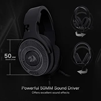 Introducing the Redragon H350 Headset, designed to provide the ultimate gaming experience. The ear cups are backlit with RGB lighting and feature a large Redragon logo under a dense mesh, creating a visually stunning design. The earpads are made of 2cm thick memory foam, ensuring maximum comfort during long gaming sessions or business trips. The main frame is stable and elastic, providing a comfortable clamping force. The package includes the H350 Headset, a detachable microphone, a 3.5mm splitter cable, and a user manual. The H350 is compatible with PC, Mac, PS4, Switch, and Xbox One. Choose from other Redragon headset models with different features such as 7.1ch Surround Sound, audio control, ENC, earpad type, drive size, sensitivity, cable type, and audio source.