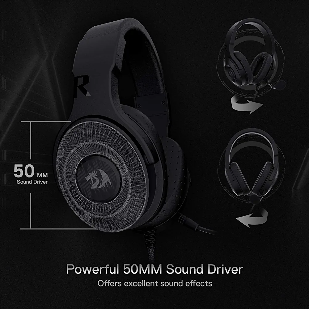 The backlit area covering the entire surface of the ear cups, the large Redragon logo under the dense mesh, everything is just perfectly right for the faith of RGB.