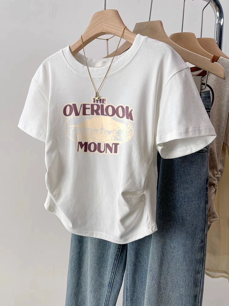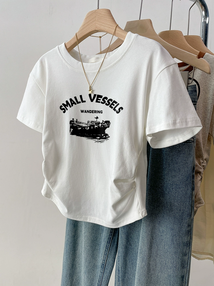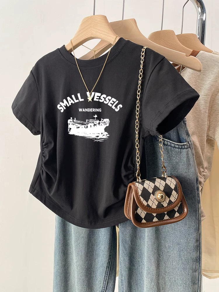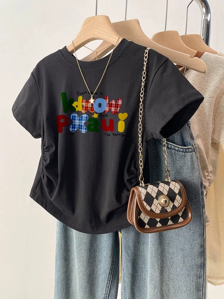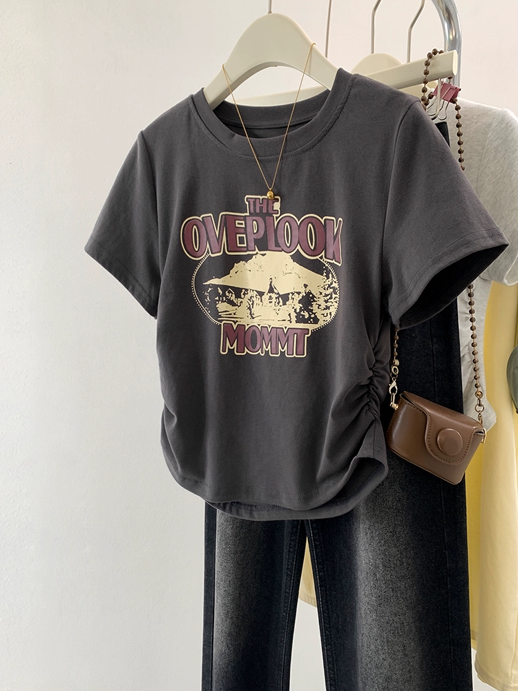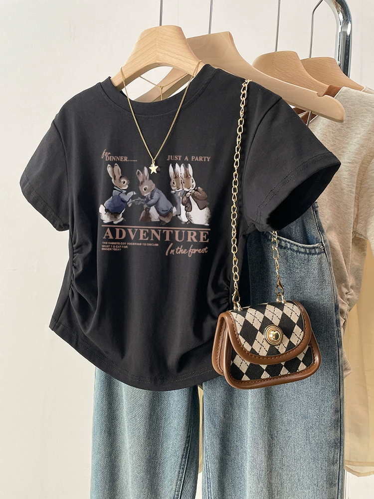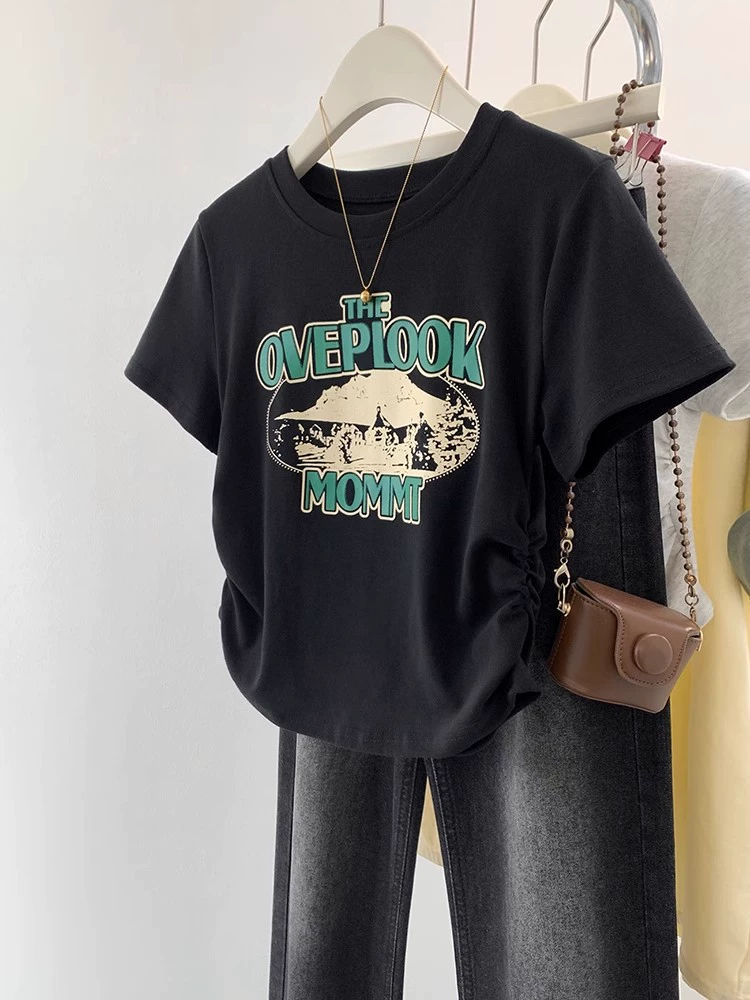 | nameOriginal | Black retro slim fit waist top short sleeve t-shirt |