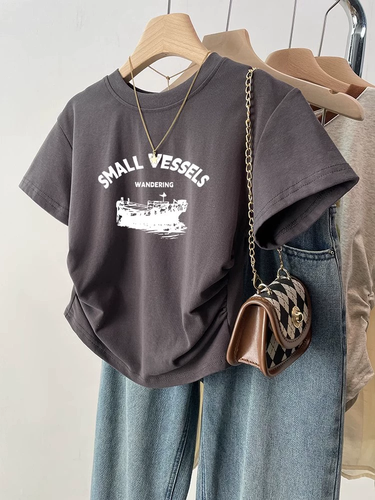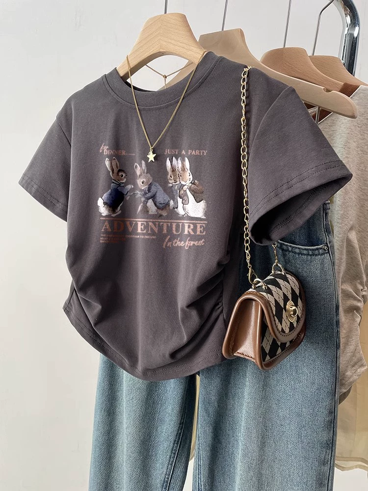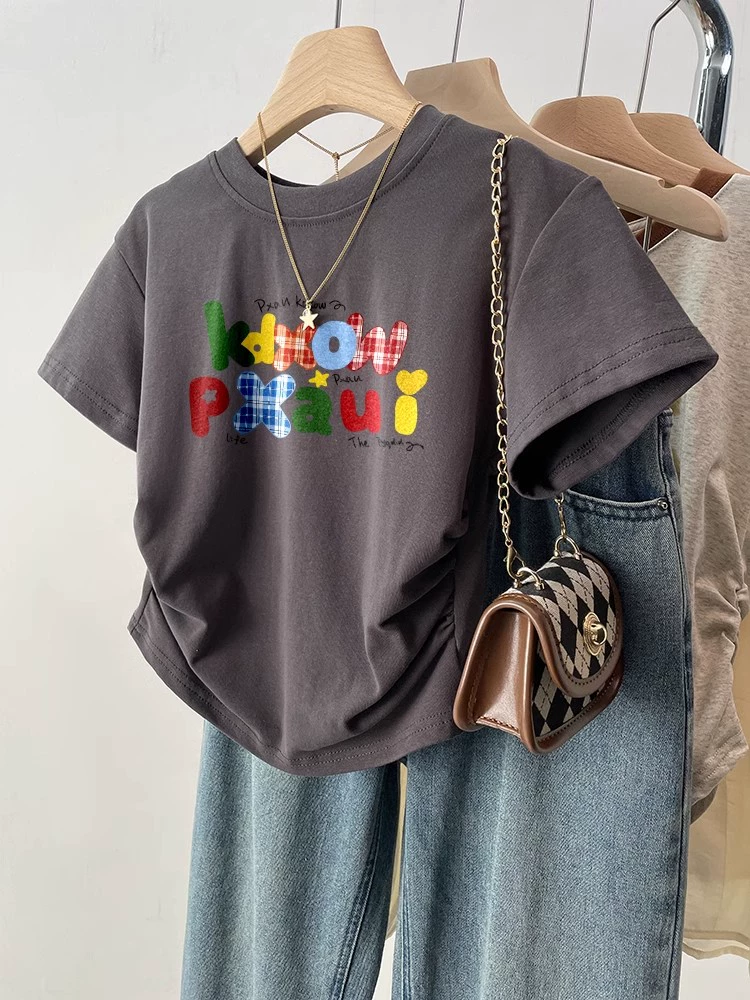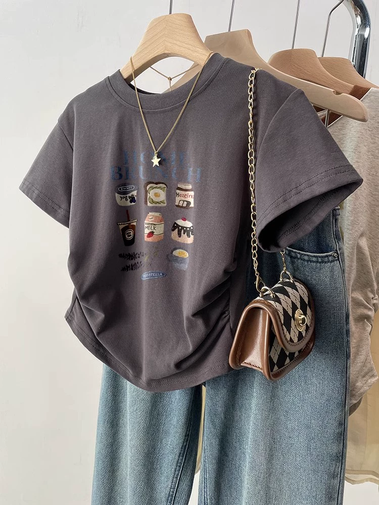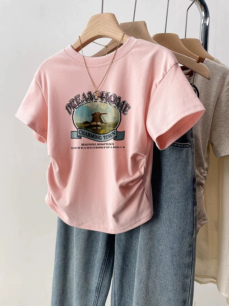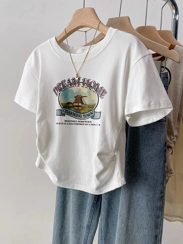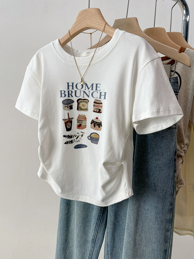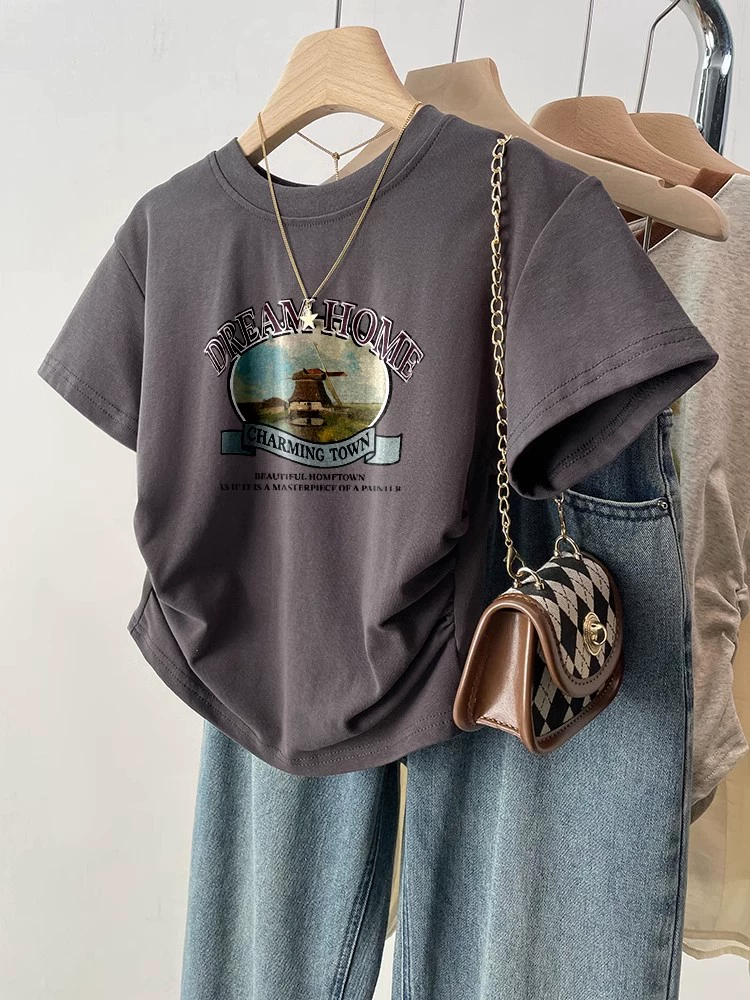 | nameOriginal | Black retro slim fit waist top short sleeve t-shirt |