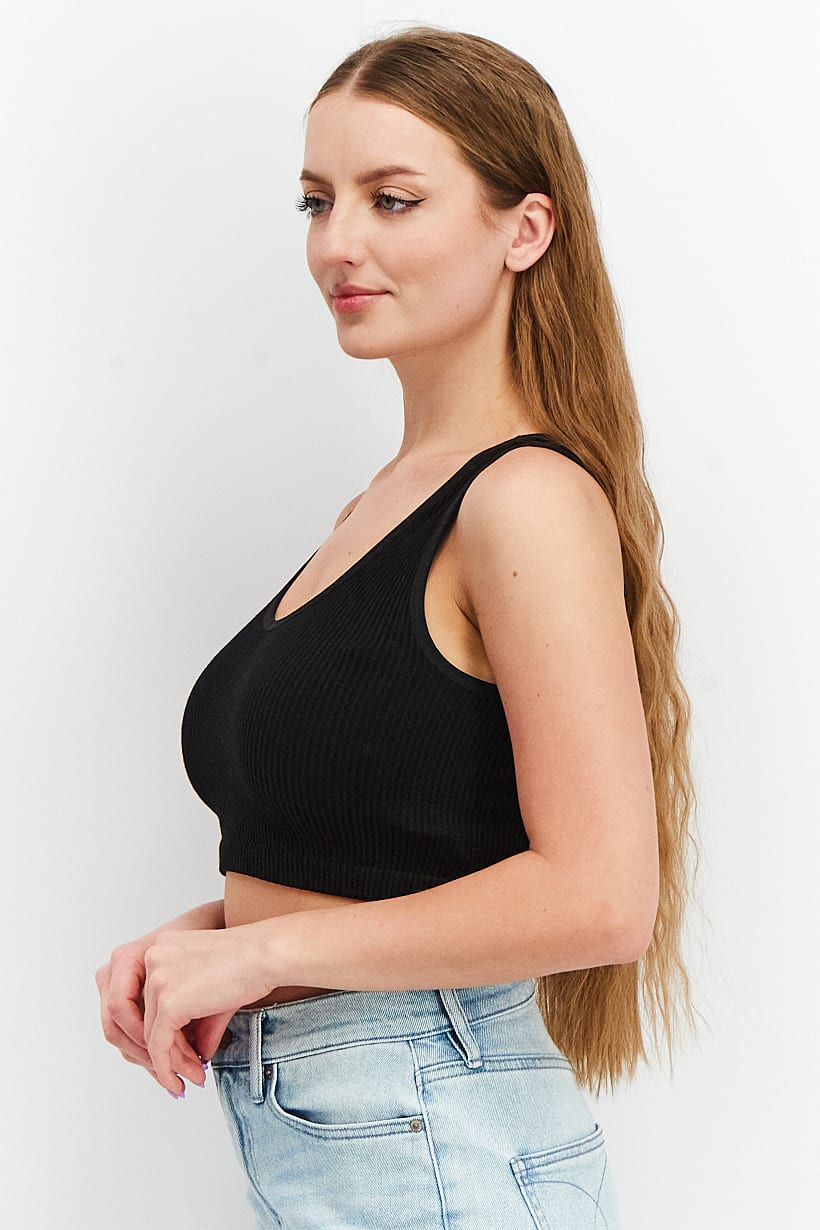| nameOriginal | Women Scoop Neck Sleeveless Seamless Ribbed Knit Cropped Top, Black |