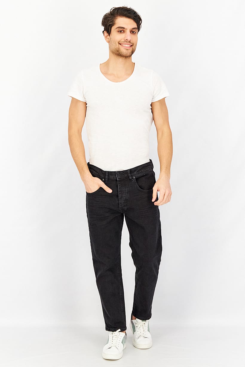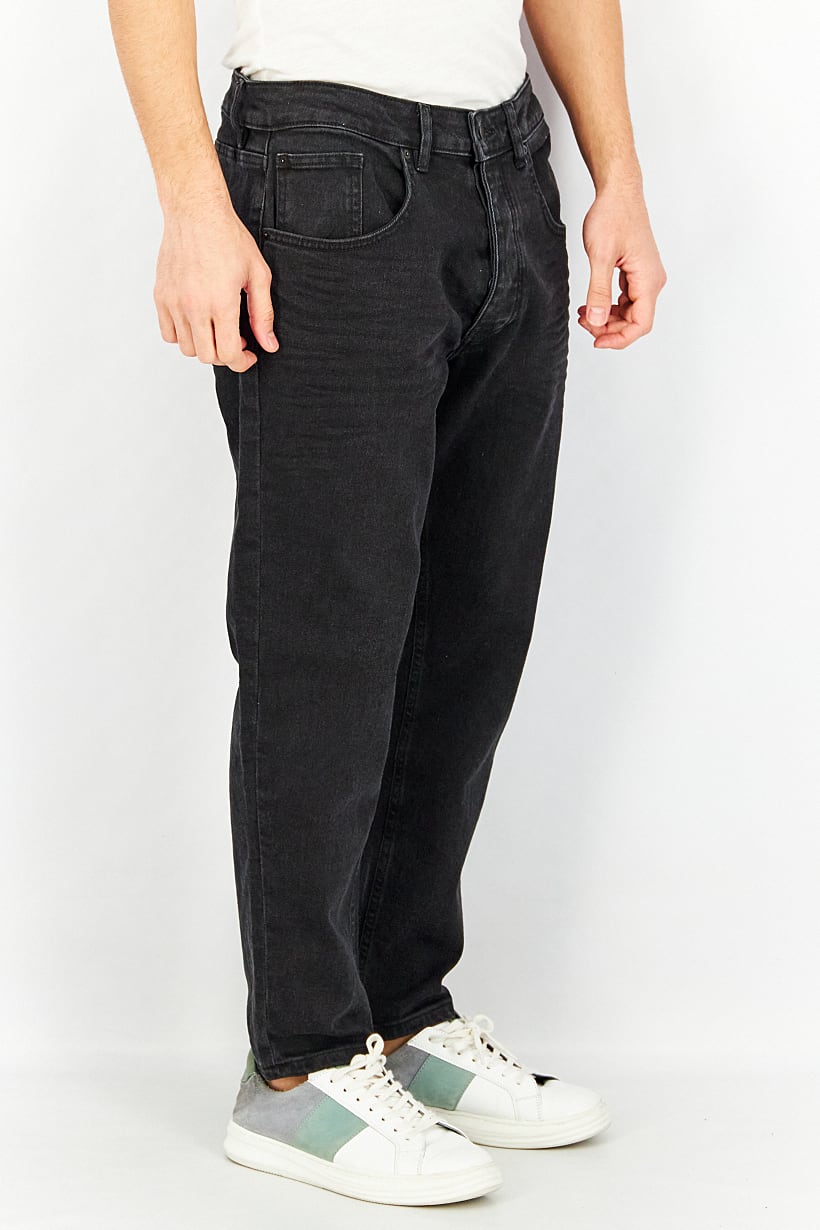 | descriptionOriginal | Bottom Hem : Straight, Care : Machine washable, Fit : Carrot Fit, No of pockets : 5, Size shown : Inches, Stretch Type : Stretchable, Types of Jeans Rise : Mid rise, Bottom Closure : Button fly, Bottom Style/Pattern : Belt loops, Five pocket style, Disclaimer : Product color may slightly vary due to photographic lighting sources or your monitor settings., Fabrics : 98% Cotton, 2% Elastane, Pattern & Print : Textured pattern, Color Family : Black, |