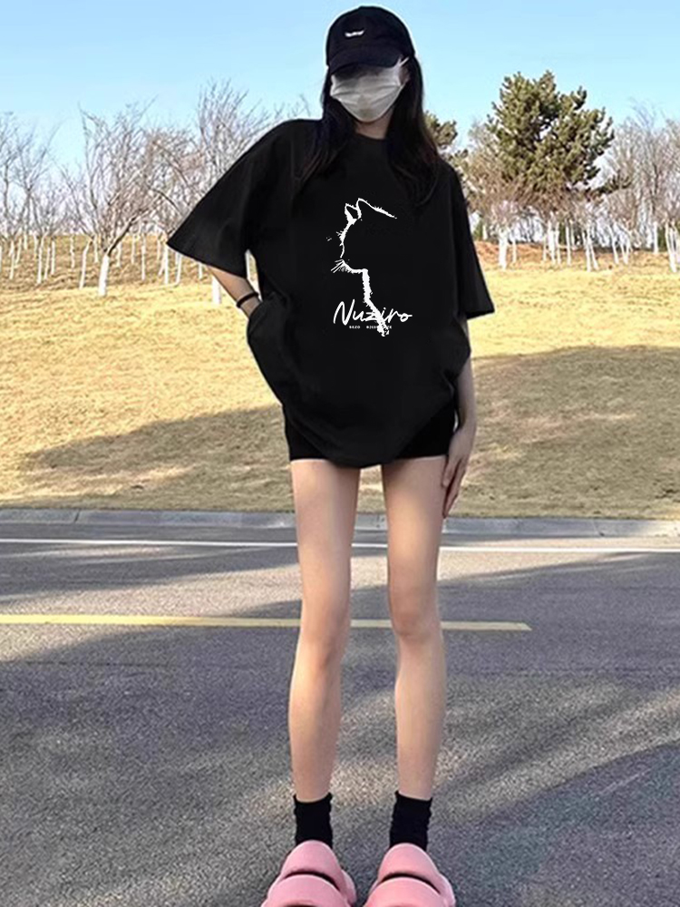 Black positive shoulder short sleeve spring loose niche T -shirt