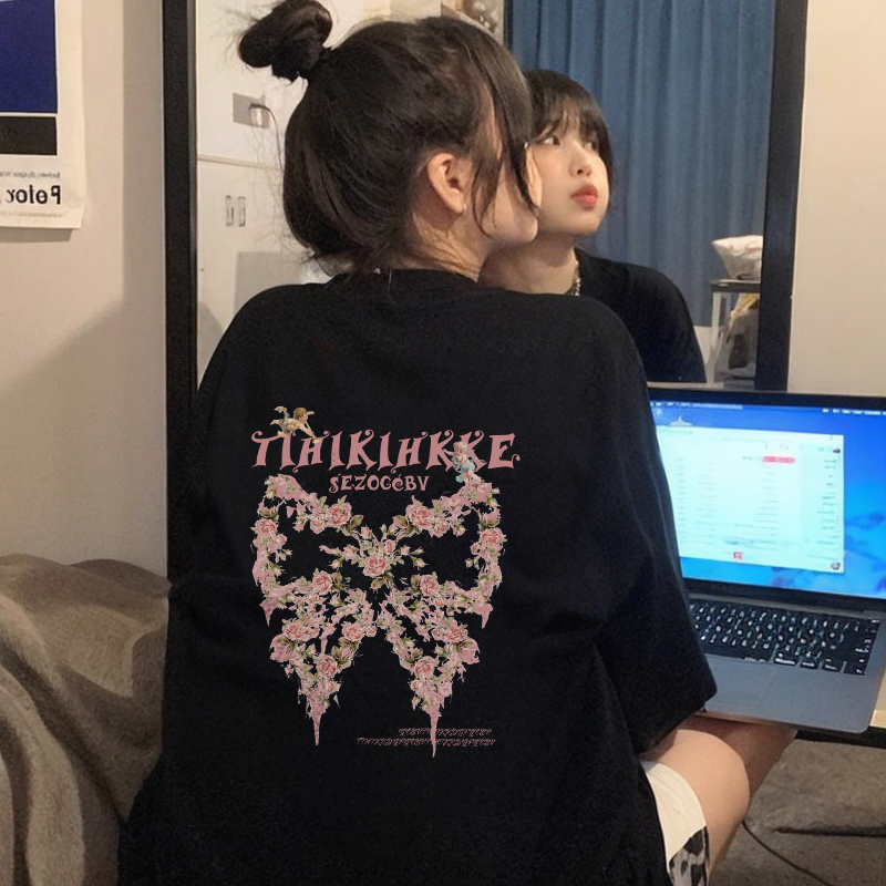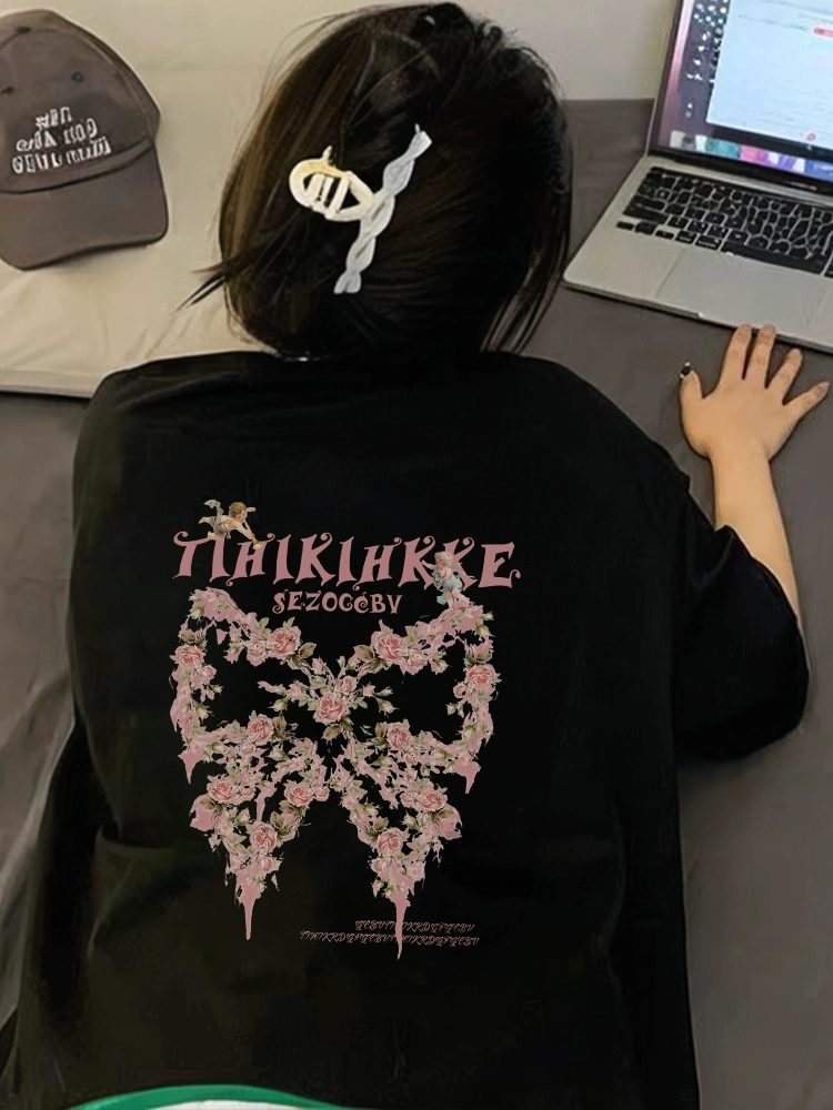| nameOriginal | Black right shoulder spring printed loose short sleeve t-shirt |