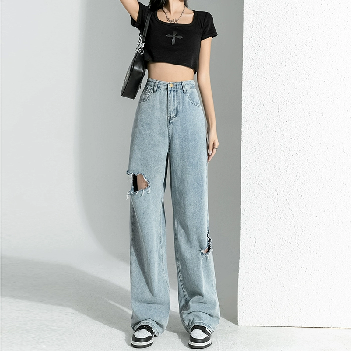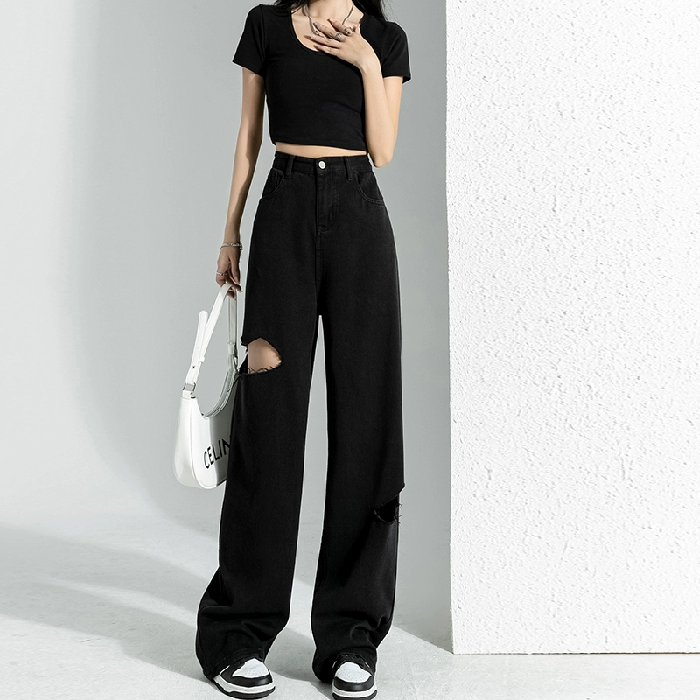 | nameOriginal | Black ripped denim American high street vertical straight pants |